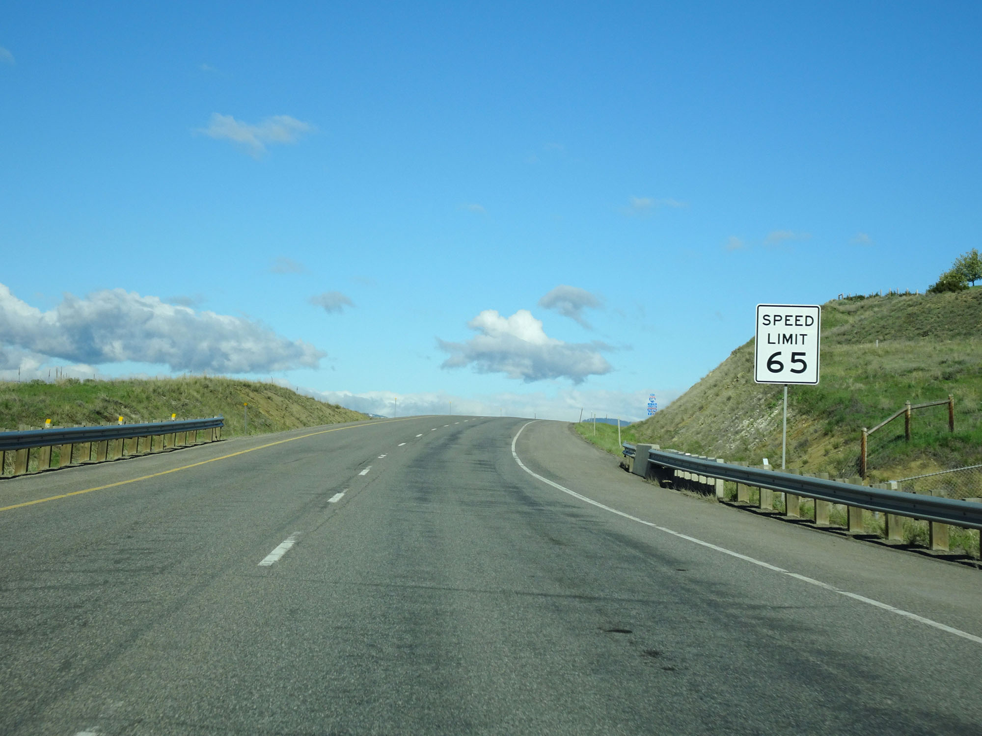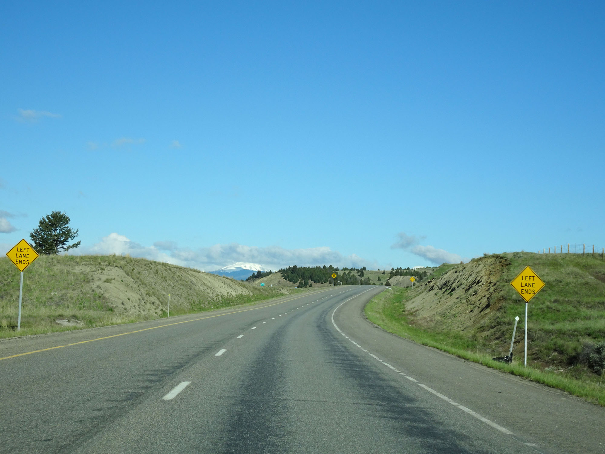 As Interstate 115 West approaches its western terminus at the junction of Interstate 15 / Interstate 90, it is reduced to one lane. (Photo taken 5/25/16). |