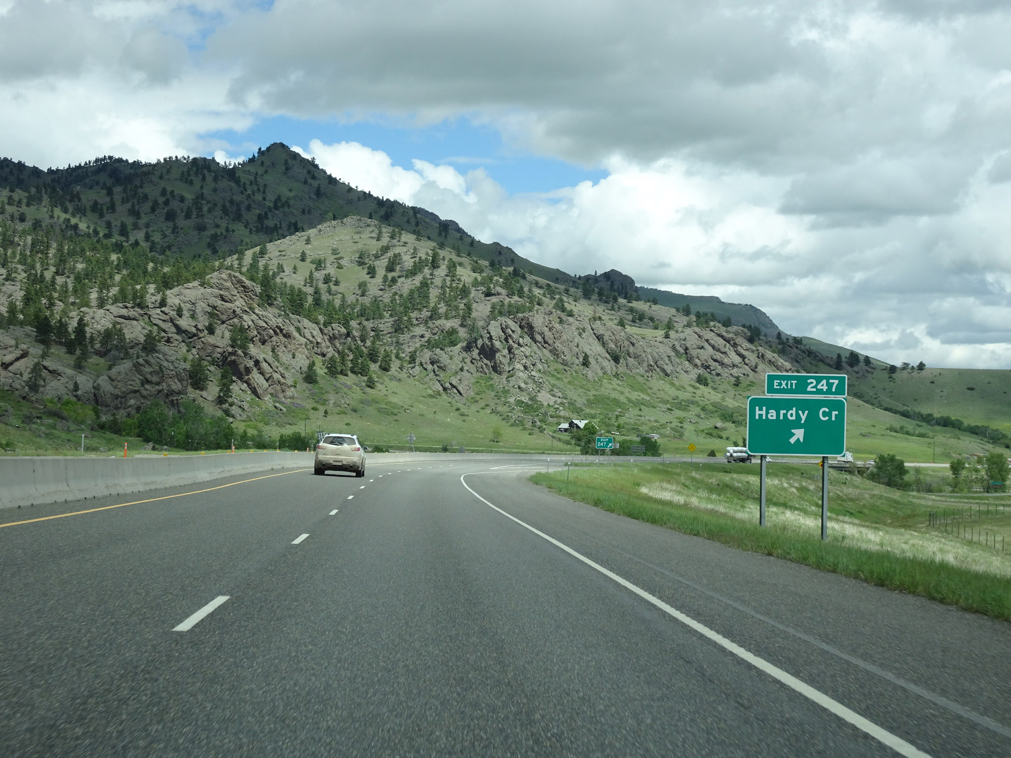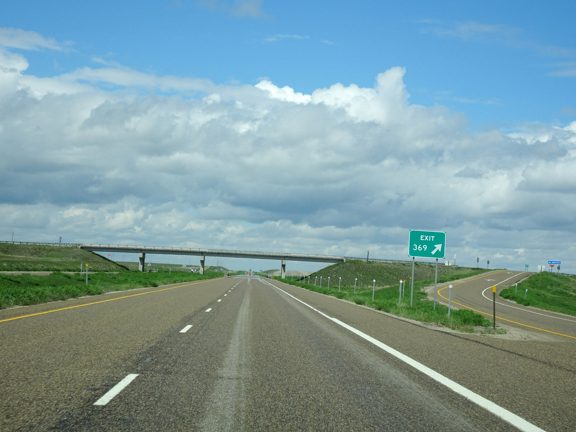 View on Interstate 15 North as it departs from Interstate 90 to the east of Butte, preparing to pass under I-90. (Photo taken 5/24/16). |