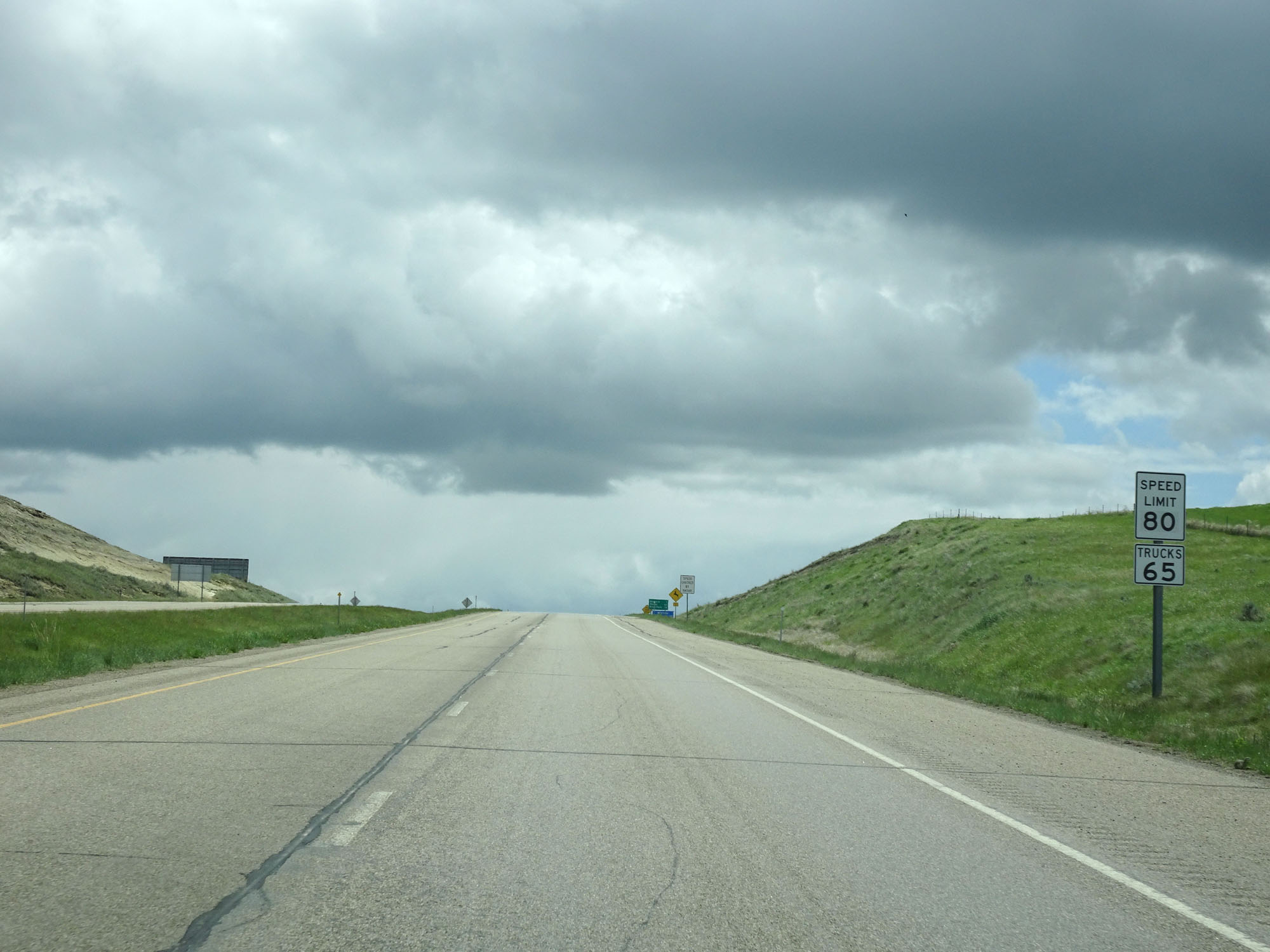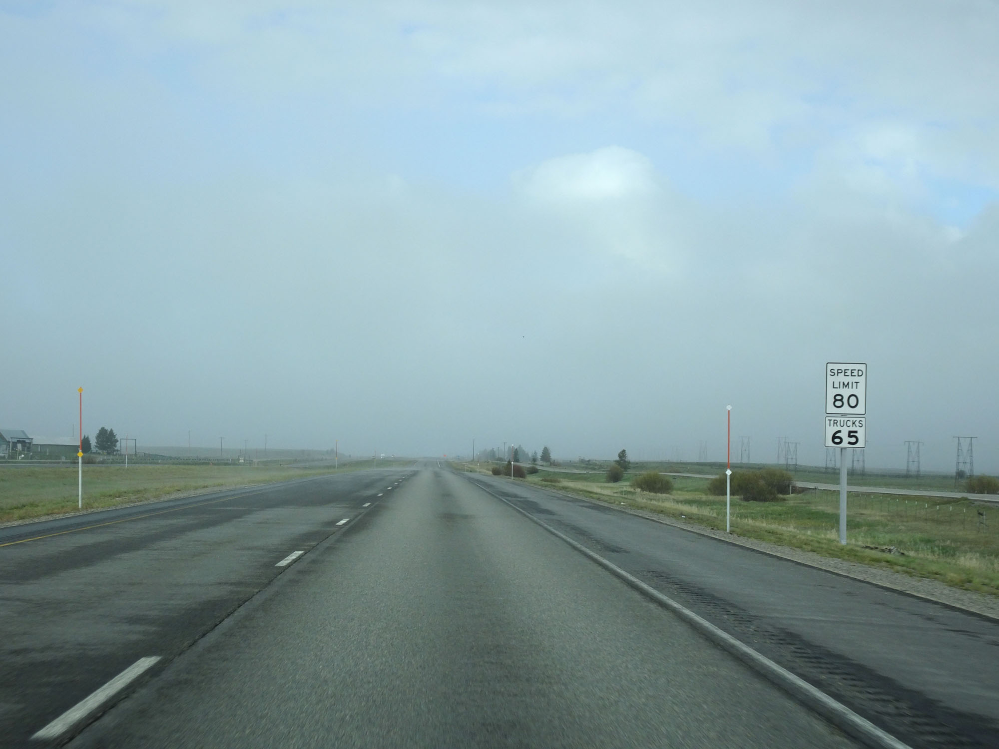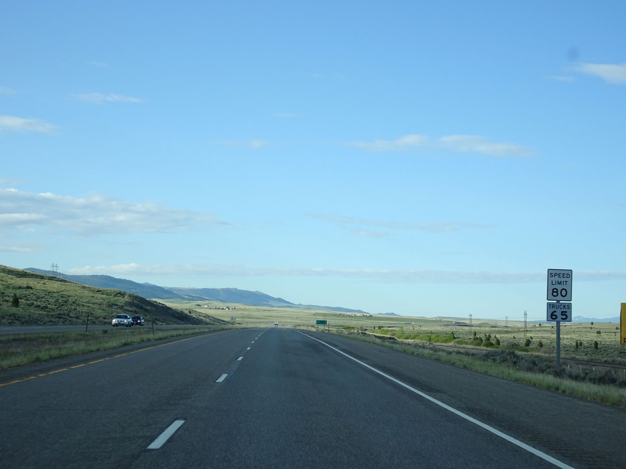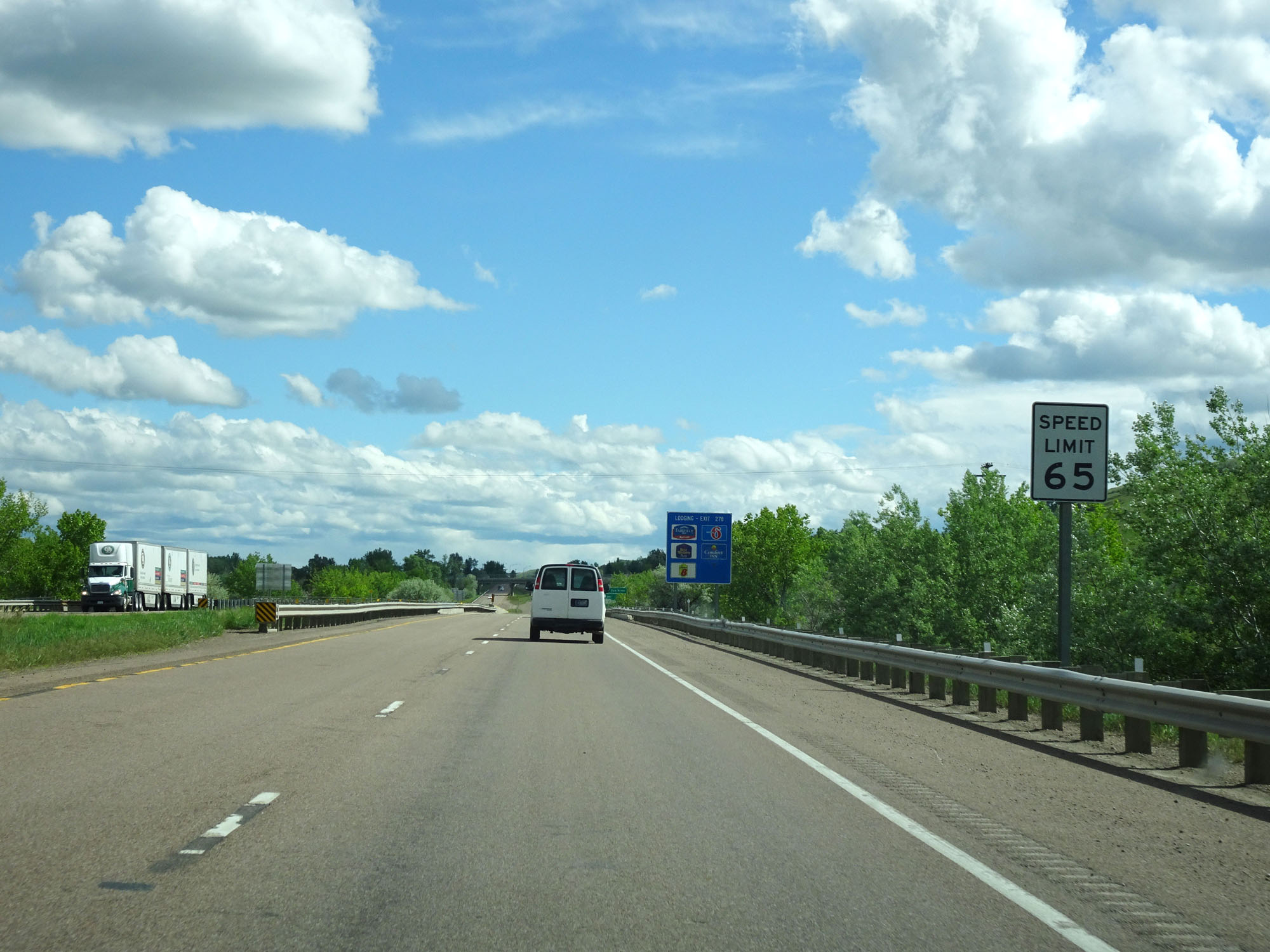 Leaving the Great Falls area, the standard rural speed limits of 80 mph for cars and 65 mph for trucks resume. (Photo taken 5/24/16). |
