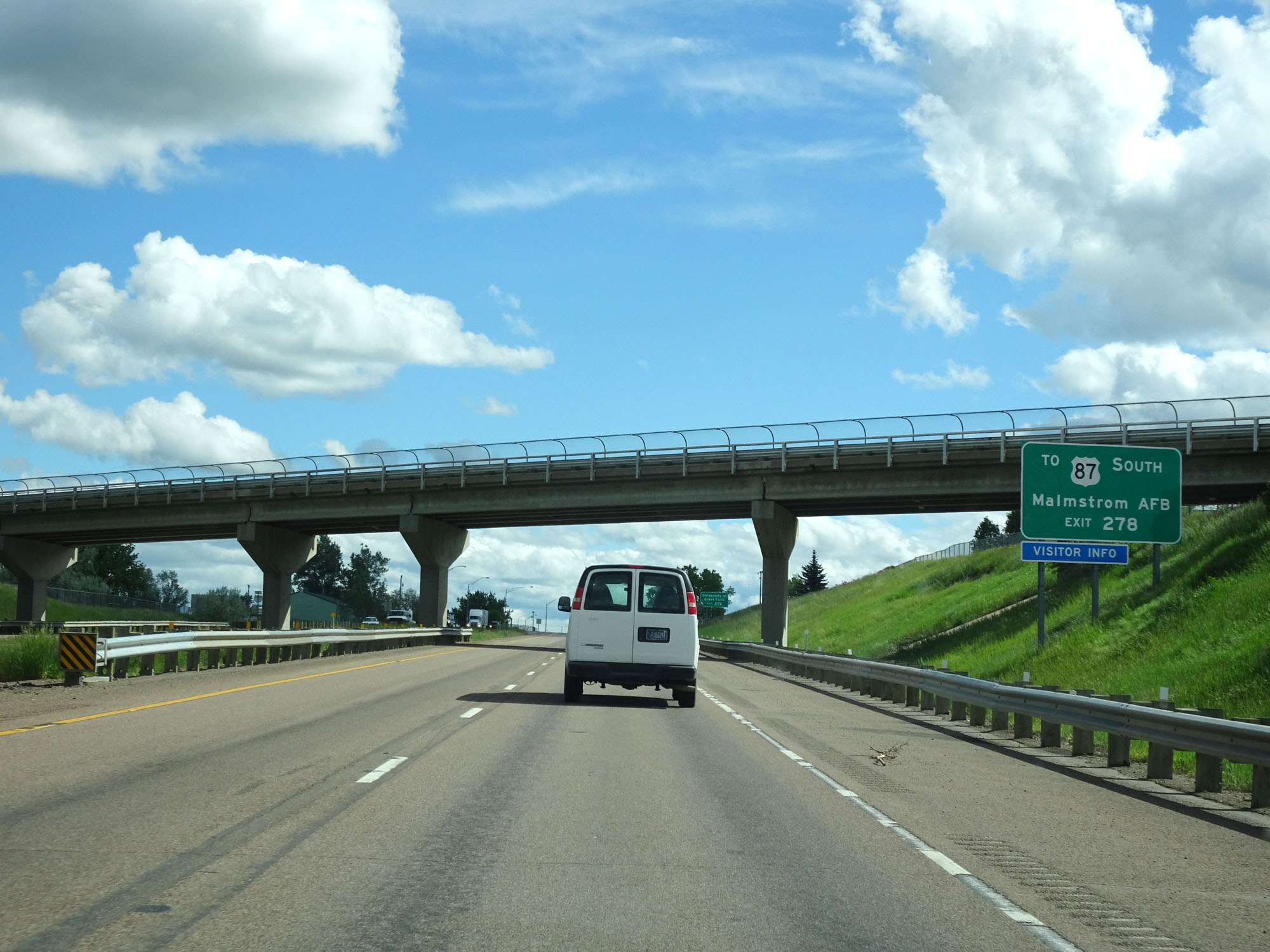 Take Exit 278 to US 87 South toward Malmstrom AFB. (Photo taken 5/24/16). |