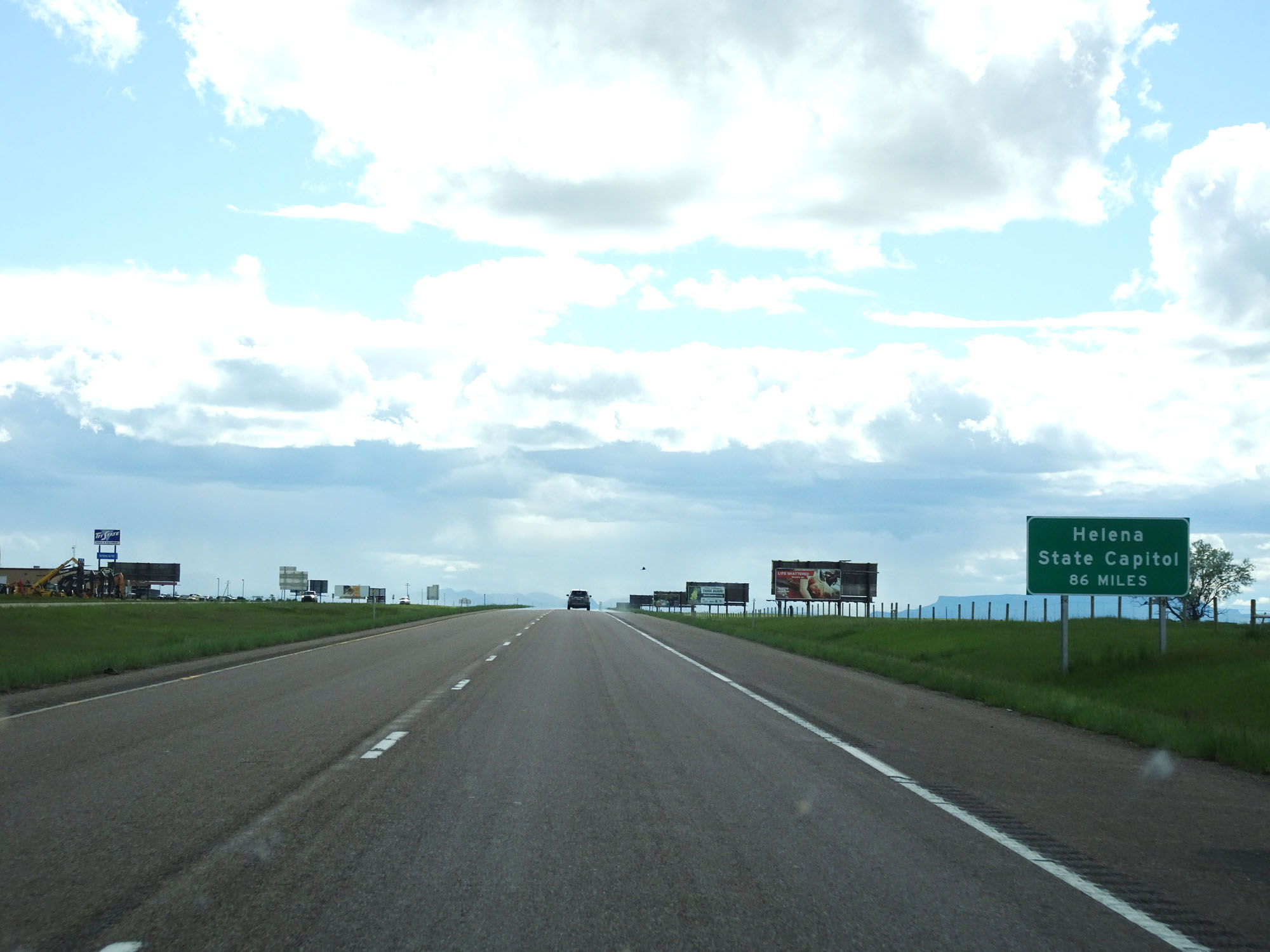 Leaving Great Falls, this sign states that it is now 86 miles to Helena and that State Capitol. (Photo taken 5/24/16). |