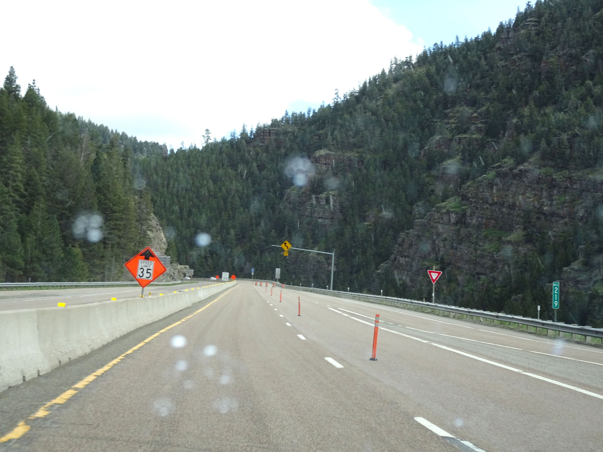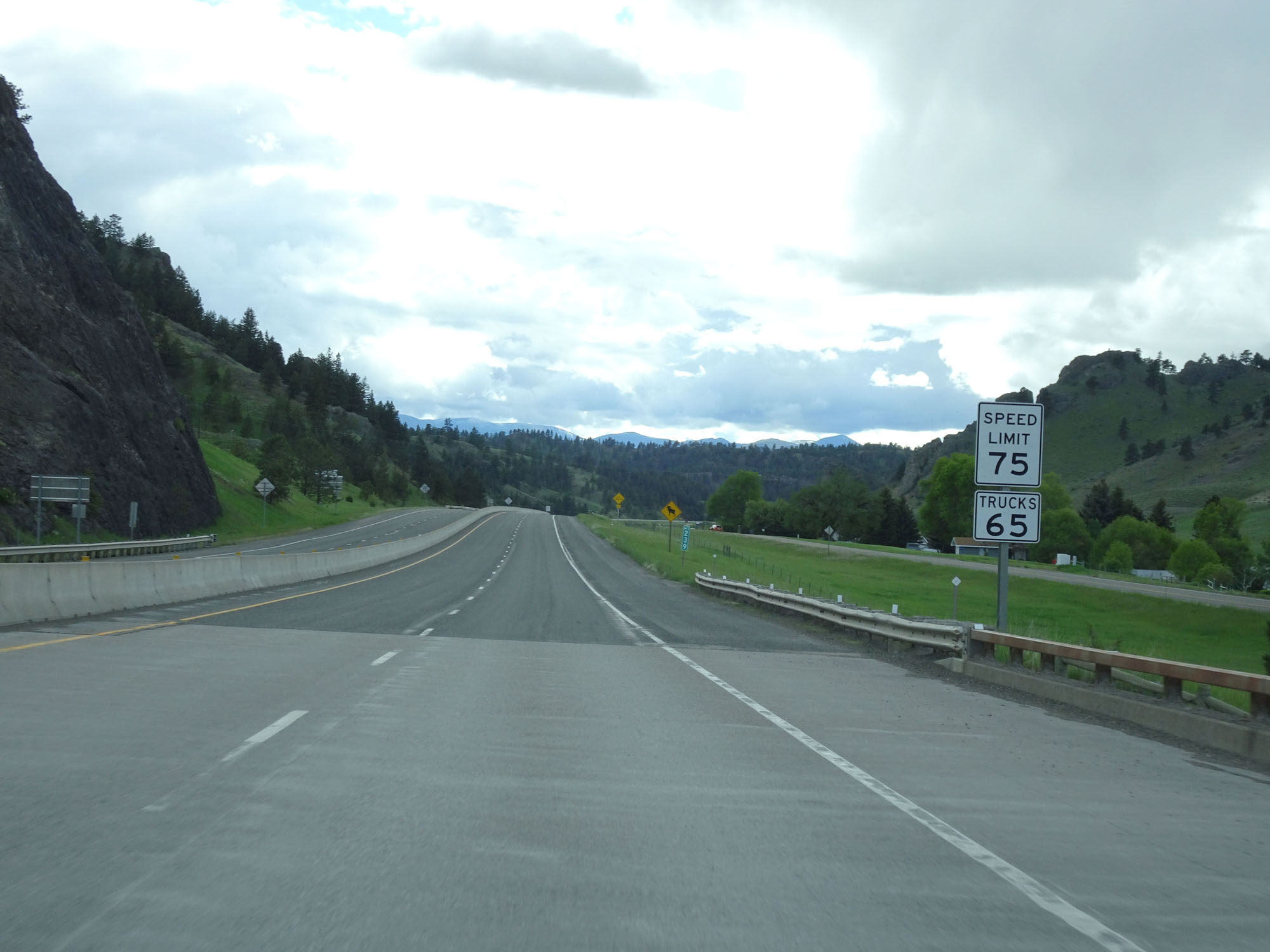 Entering this mountainous stretch, the speed limit for cars decreases slightly to 75 mph. It remains 65 mph for trucks. (Photo taken 5/24/16). |