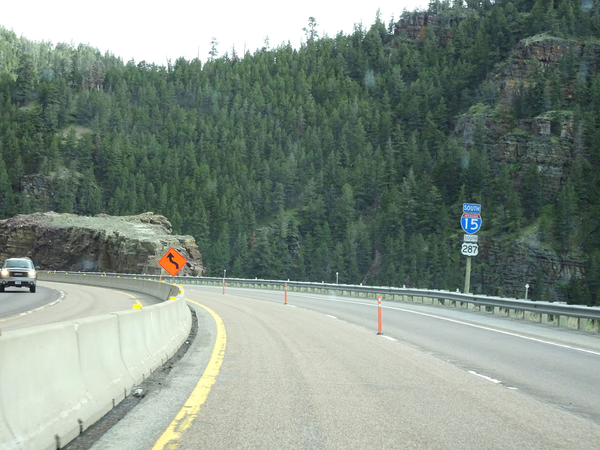 Interstate 15 South / US 287 South reassurance markers. (Photo taken 5/24/16). |