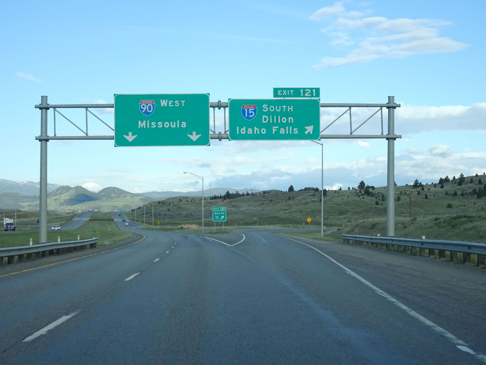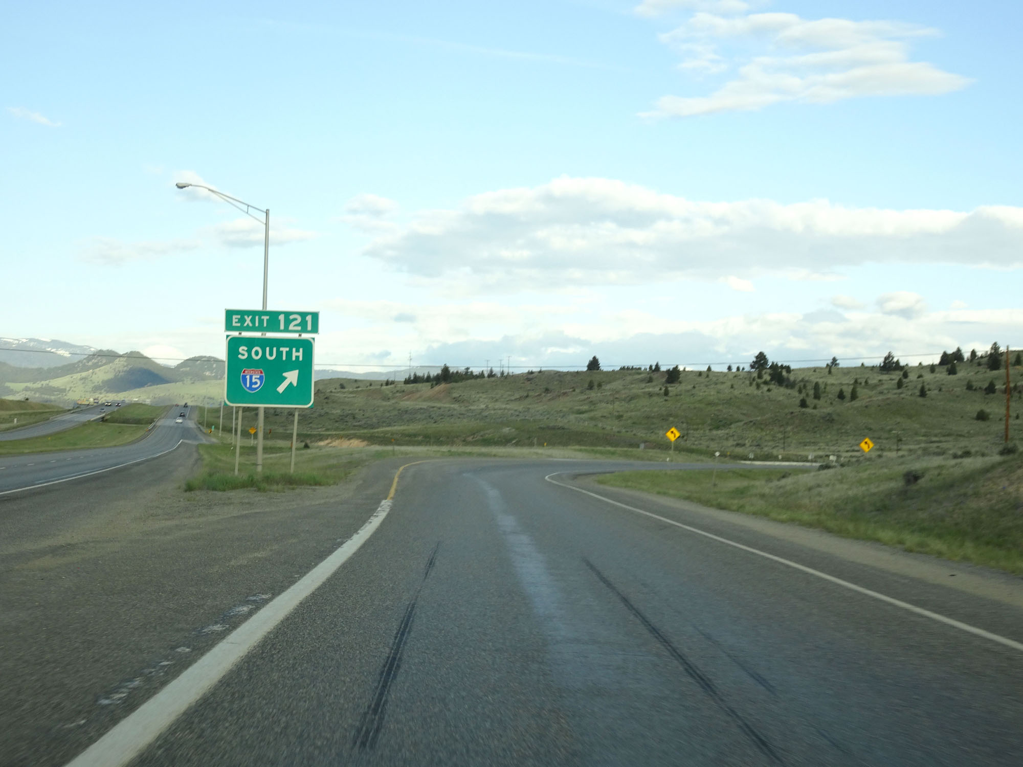 Interstate 15 South at Exit 228: US 287 North - Augusta / Choteau (Photo taken 5/24/16). |