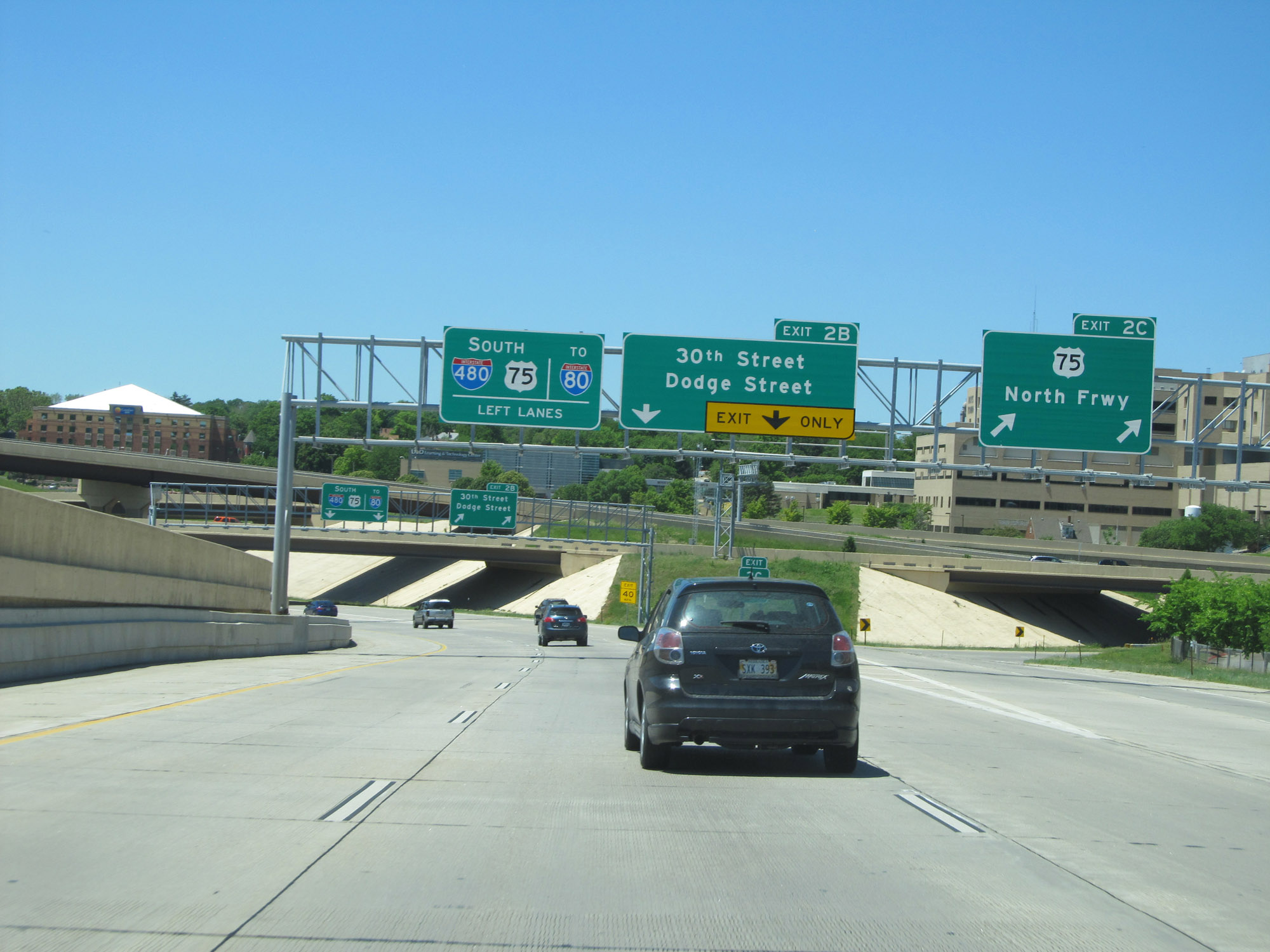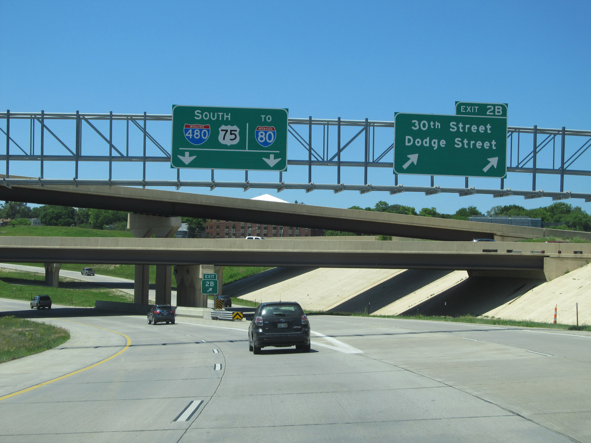 Interstate 480 West at Exit 2B: 30th Street / Dodge Street (Photo taken 5/29/16). |