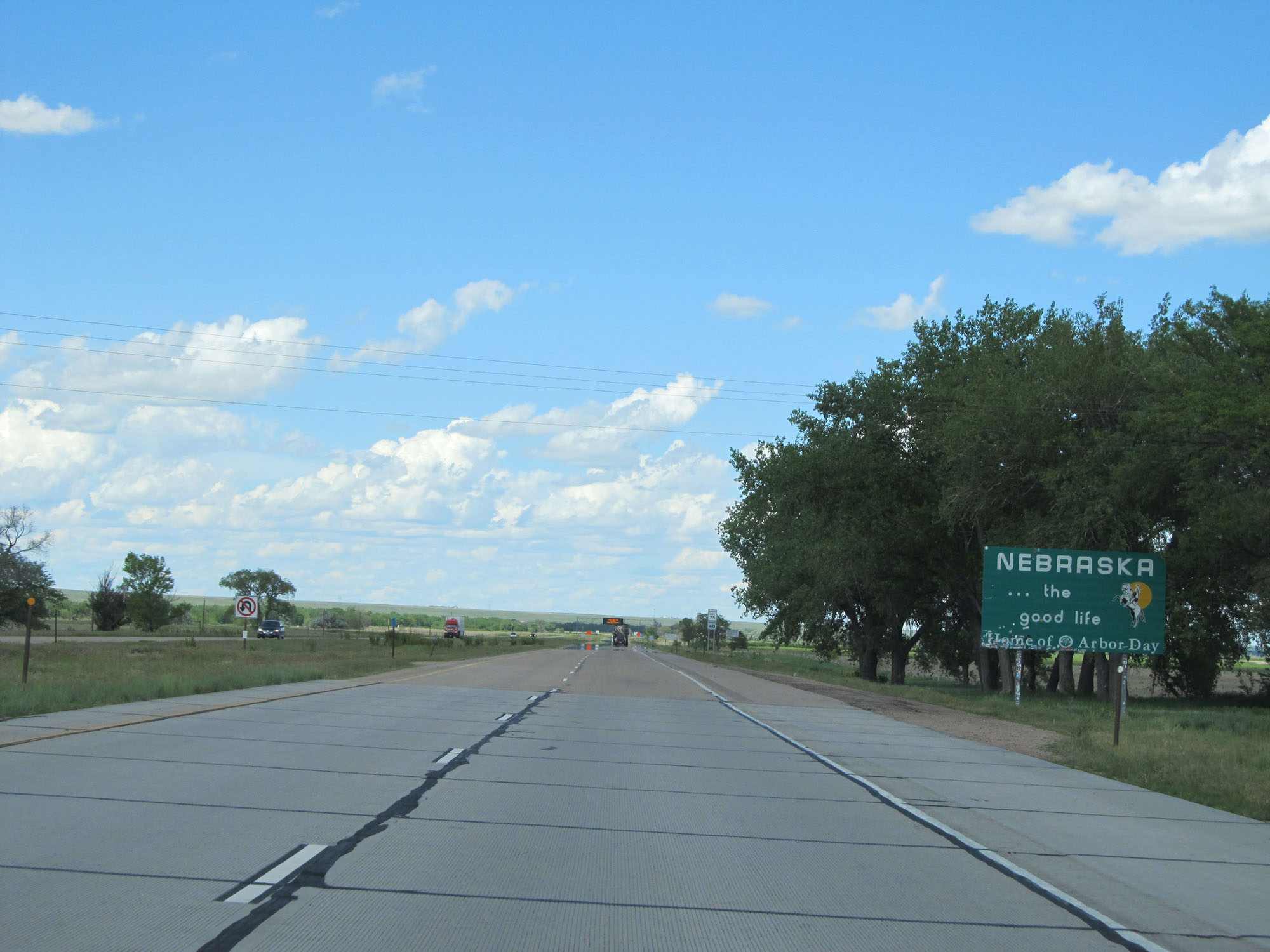 Nebraska welcome sign as Interstate 76 East enters the Cornhusker State from Colorado. (Photo taken 5/28/16). |