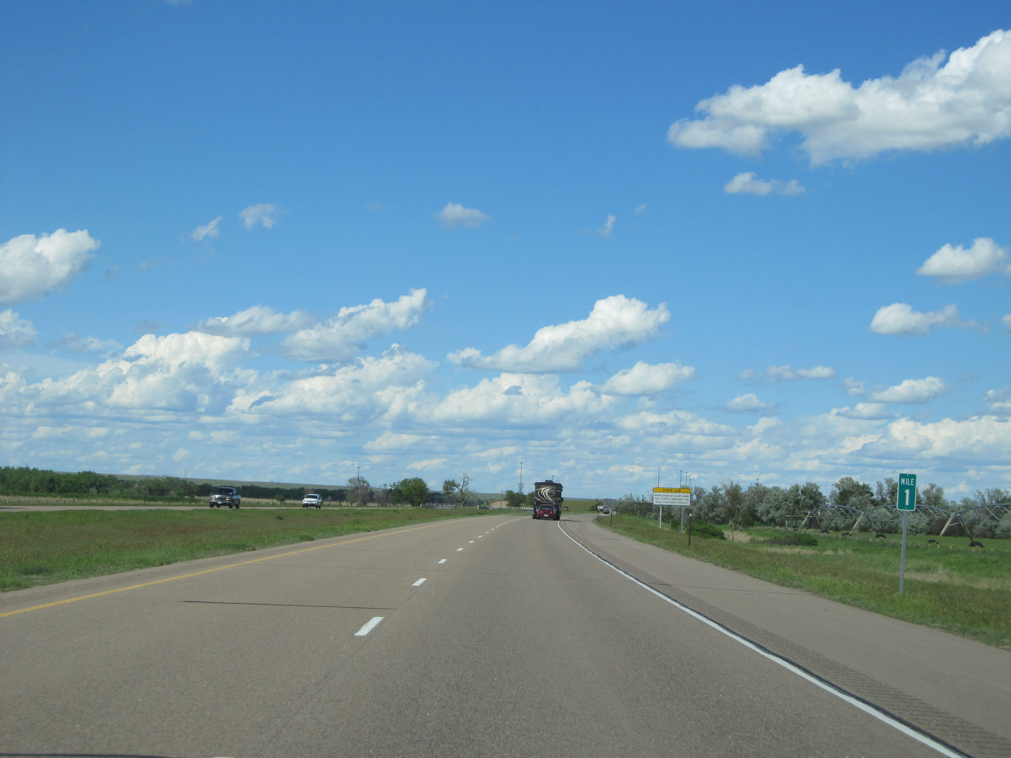 Interstate 76 East approaching Exit 102, which is the junction of Interstate 80 and the eastern terminus of Interstate 76 - 1 mile. This interchange, being the only exit on I-76 in Nebraska, uses I-80's mileage for the exit number. (Photo taken 5/28/16). |