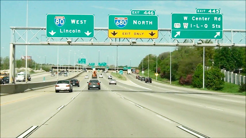 Interstate 80 West at Exit 445: W Center Rd / US 275 / NE 92 / I-L-Q Streets (Photo taken 5/17/13). |