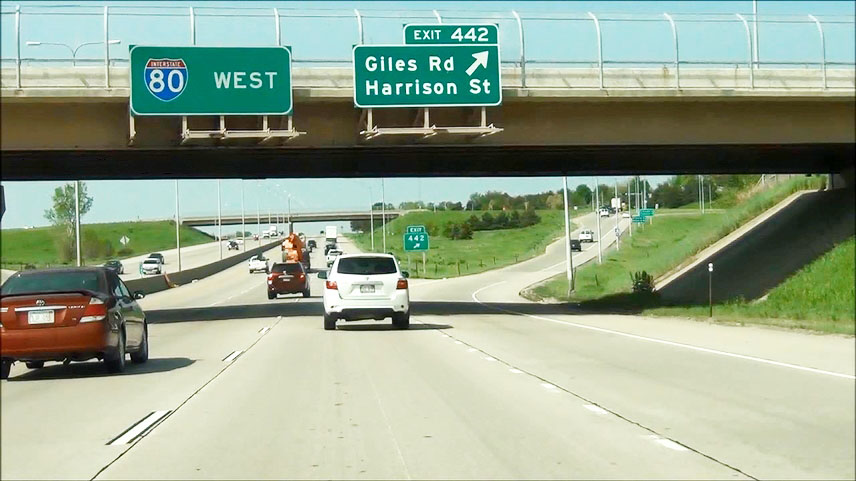 Interstate 80 West at Exit 442: Giles Rd / Harrison St (Photo taken 5/17/13). |
