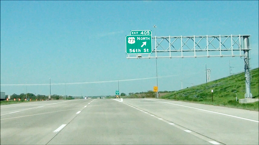 Interstate 80 West at Exit 405: US 77 North - 56th St (Photo taken 5/17/13). |