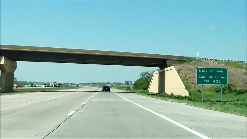 Take Exit 403 to the University of Nebraska, the Zoo, and Museums. (Photo taken 5/17/13). |