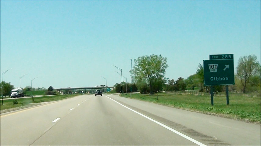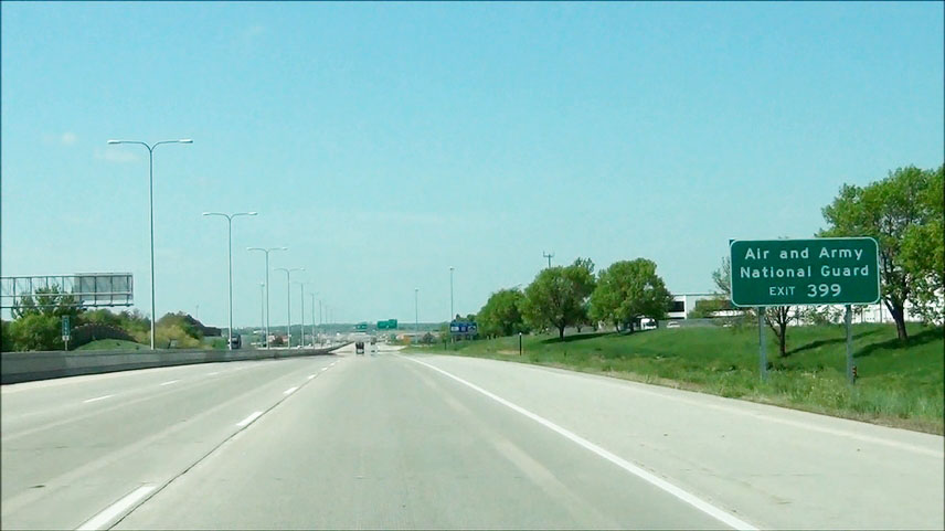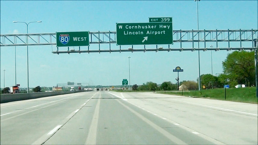 Interstate 80 West at Exit 399: W Cornhusker Hwy / Lincoln Airport (Photo taken 5/17/13). |