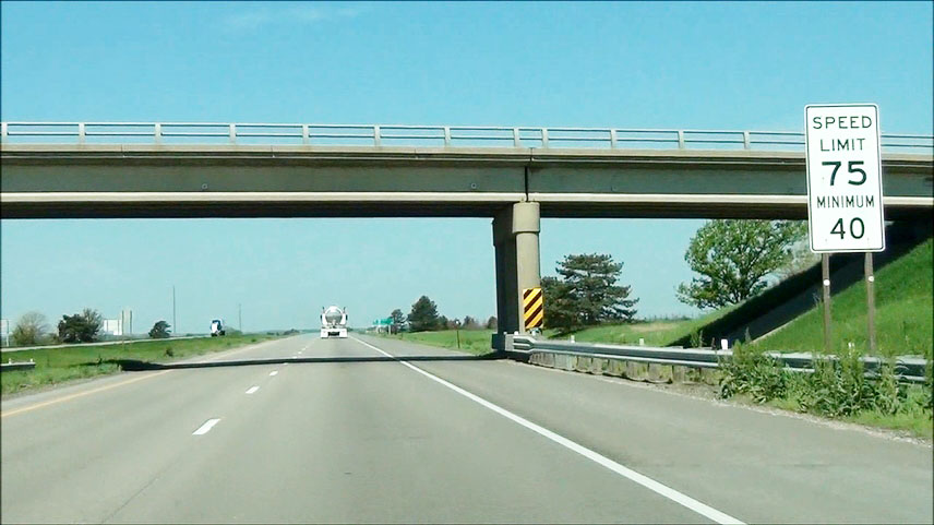 Near mile marker 406, the speed limit drops to 65 mph as you prepare to pass through Lincoln. (Photo taken 5/17/13). |
