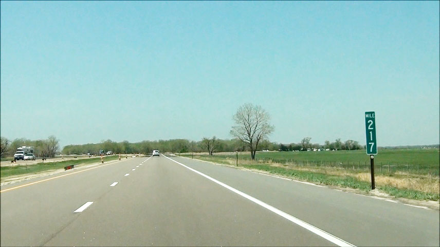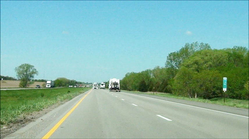 Near mile marker 443, the speed limit increases to 65 mph as you begin to leave the Omaha area. (Photo taken 5/17/13). |