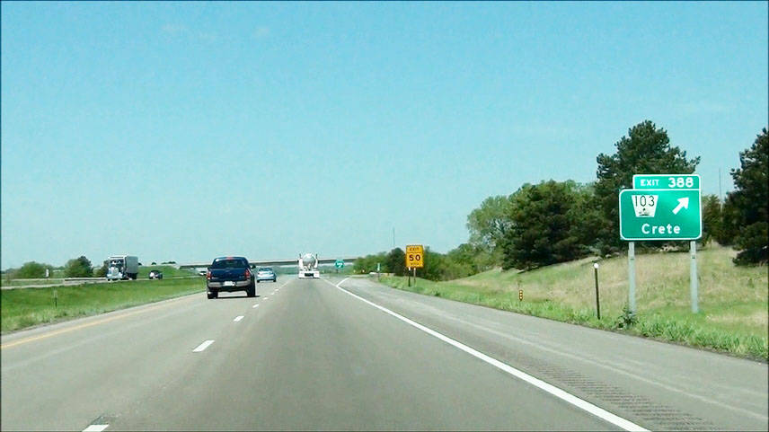 Interstate 80 West at Exit 388: NE 103 - Crete (Photo taken 5/17/13). |