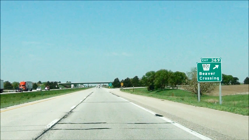 Interstate 80 West at Exit 369: Nebraska Link 80E - Beaver Crossing (Photo taken 5/17/13). |