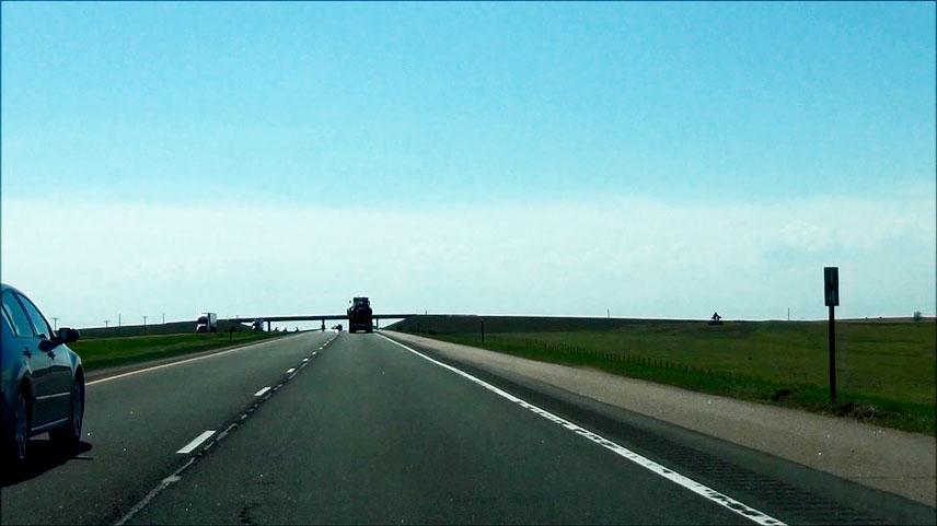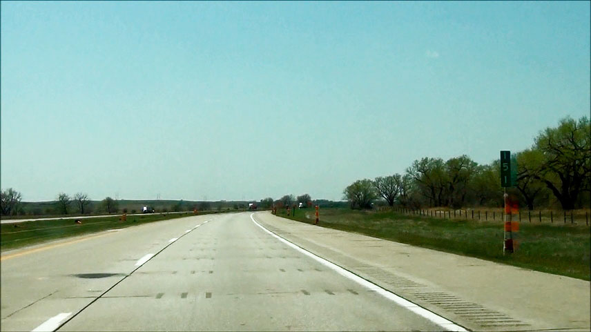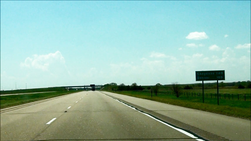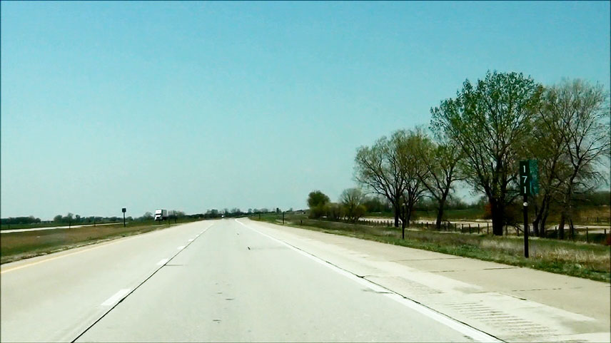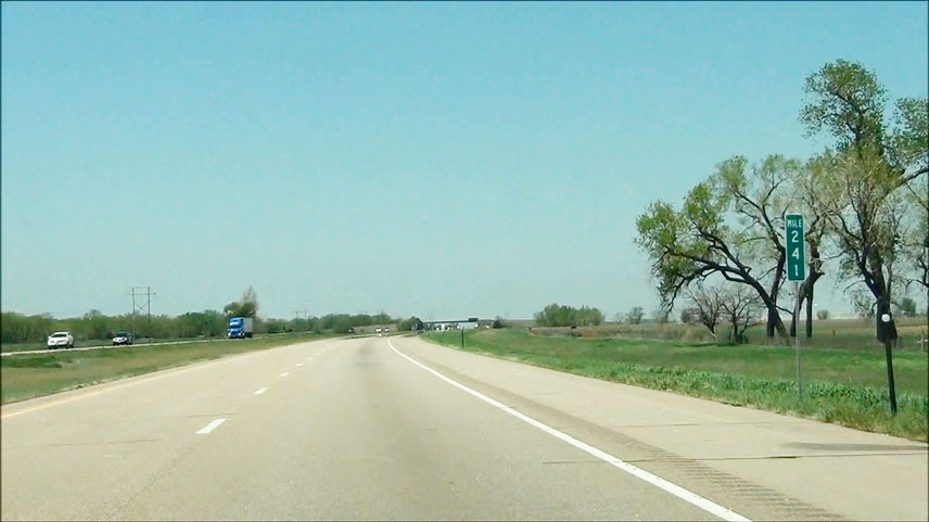 Road view near mile marker 445 as Interstate 80 West curves to the southwest to head toward Lincoln. (Photo taken 5/17/13). |