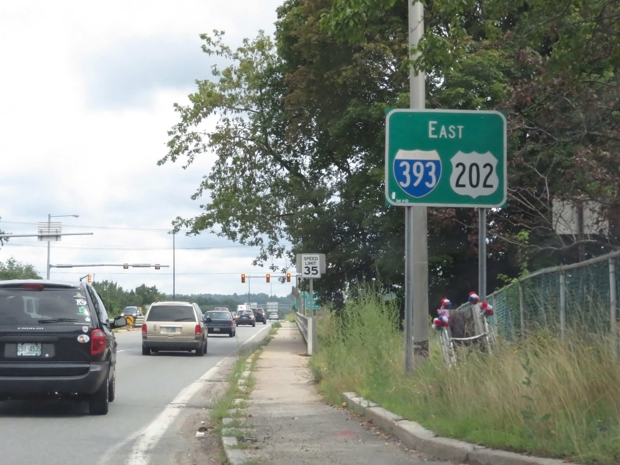 Interstate 393 East at its eastern terminus, as US 4 East / US 202 East / NH 9 East take over. (Photo taken 8/8/17). |