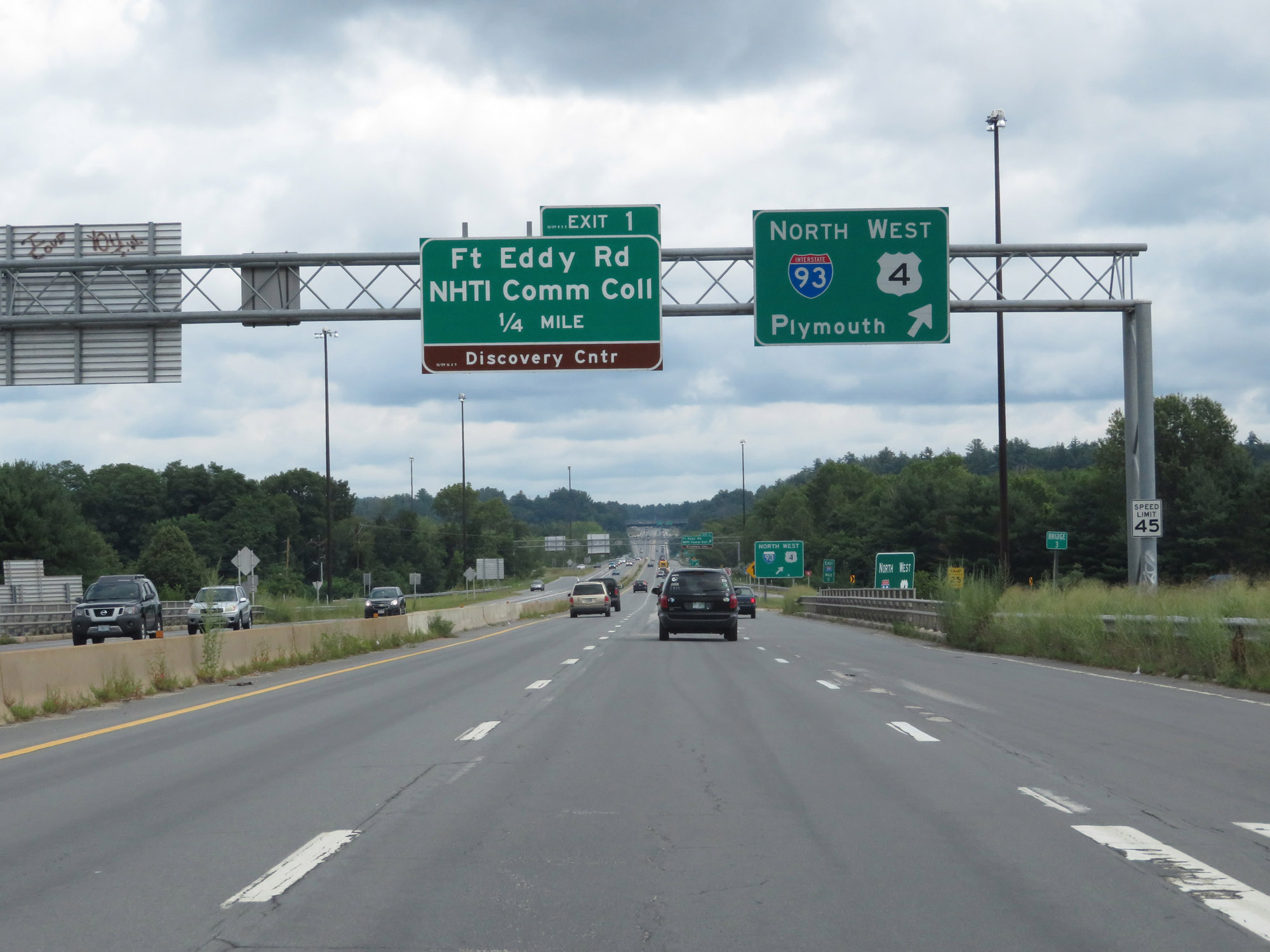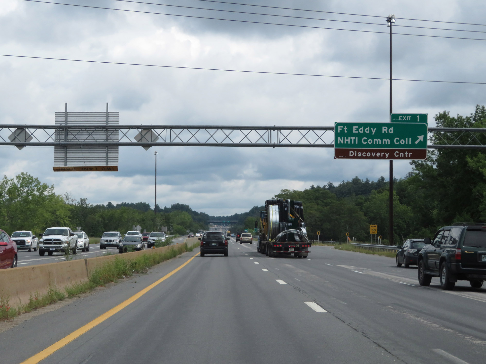 Interstate 393 East at Exit 1: Ft Eddy Rd / NHTI Community College / Discovery Center (Photo taken 8/8/17). |