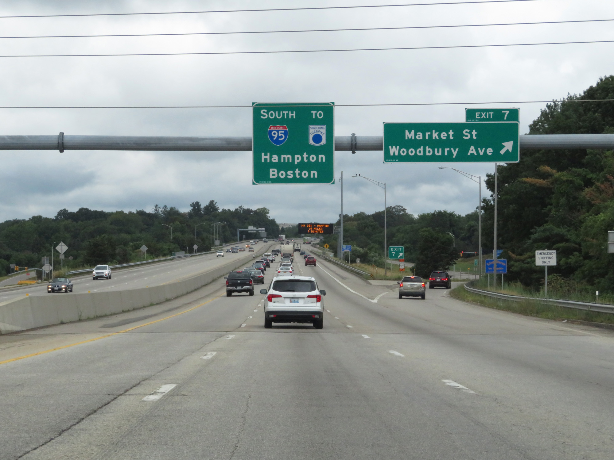 Interstate 95 South at Exit 7: Market St / Woodbury Ave (Photo taken 8/8/17). |