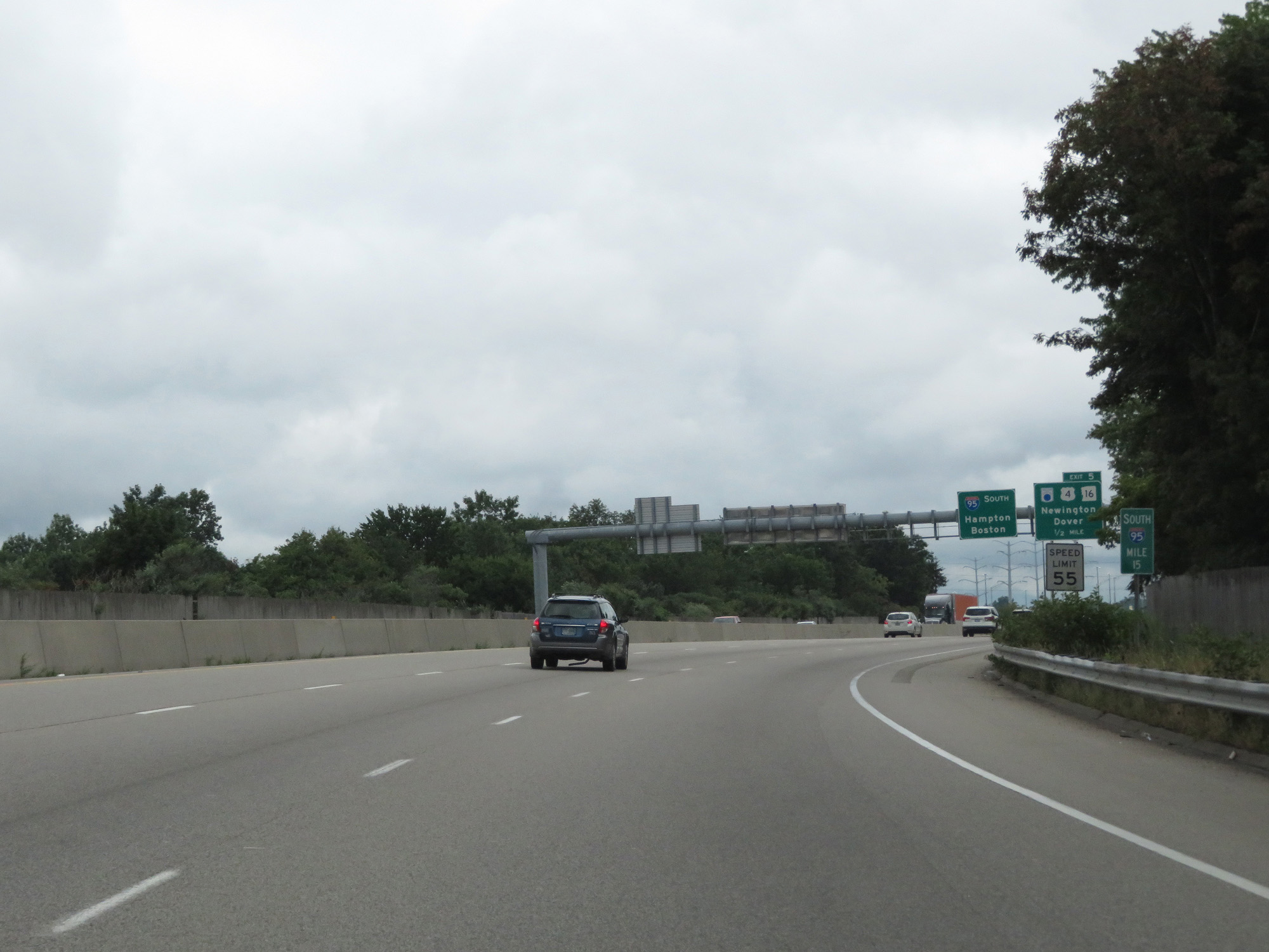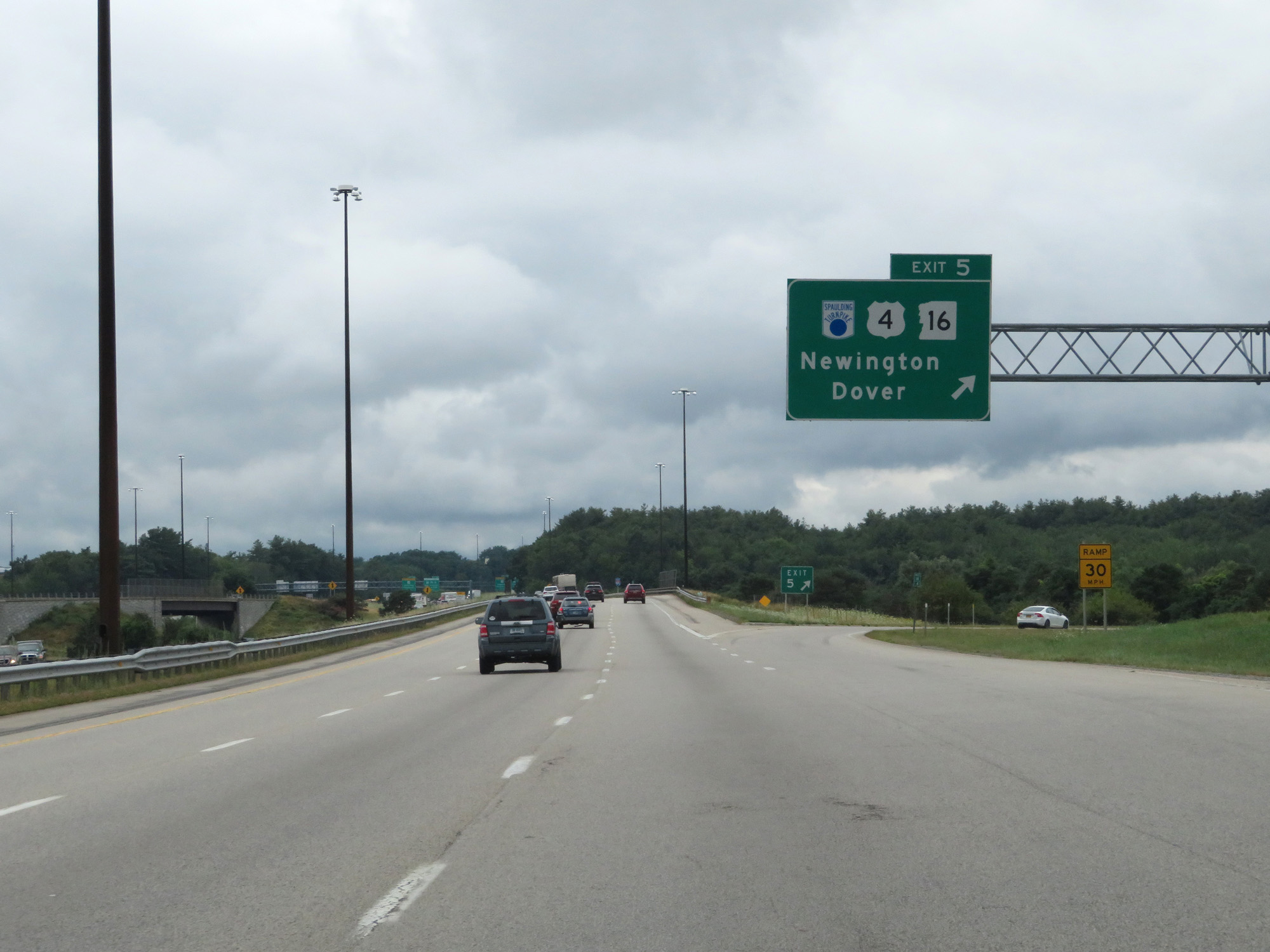 Interstate 95 South at Exit 5: US 4 / NH 16 / Spaulding Turnpike - Newington / Dover (Photo taken 8/8/17). |
