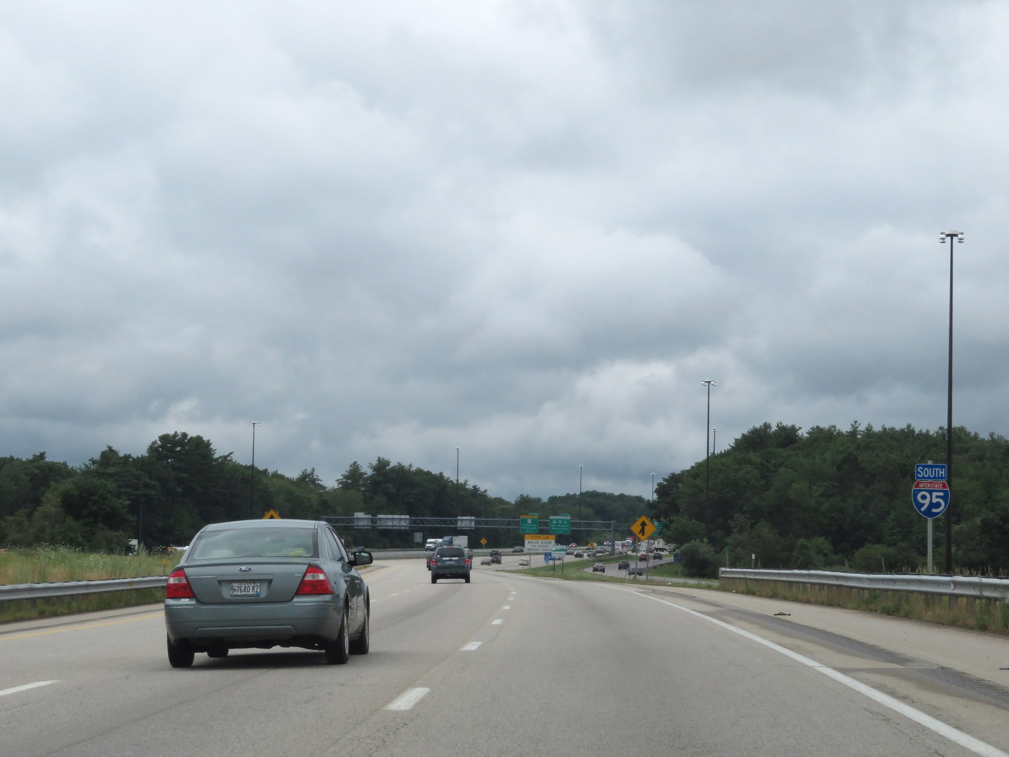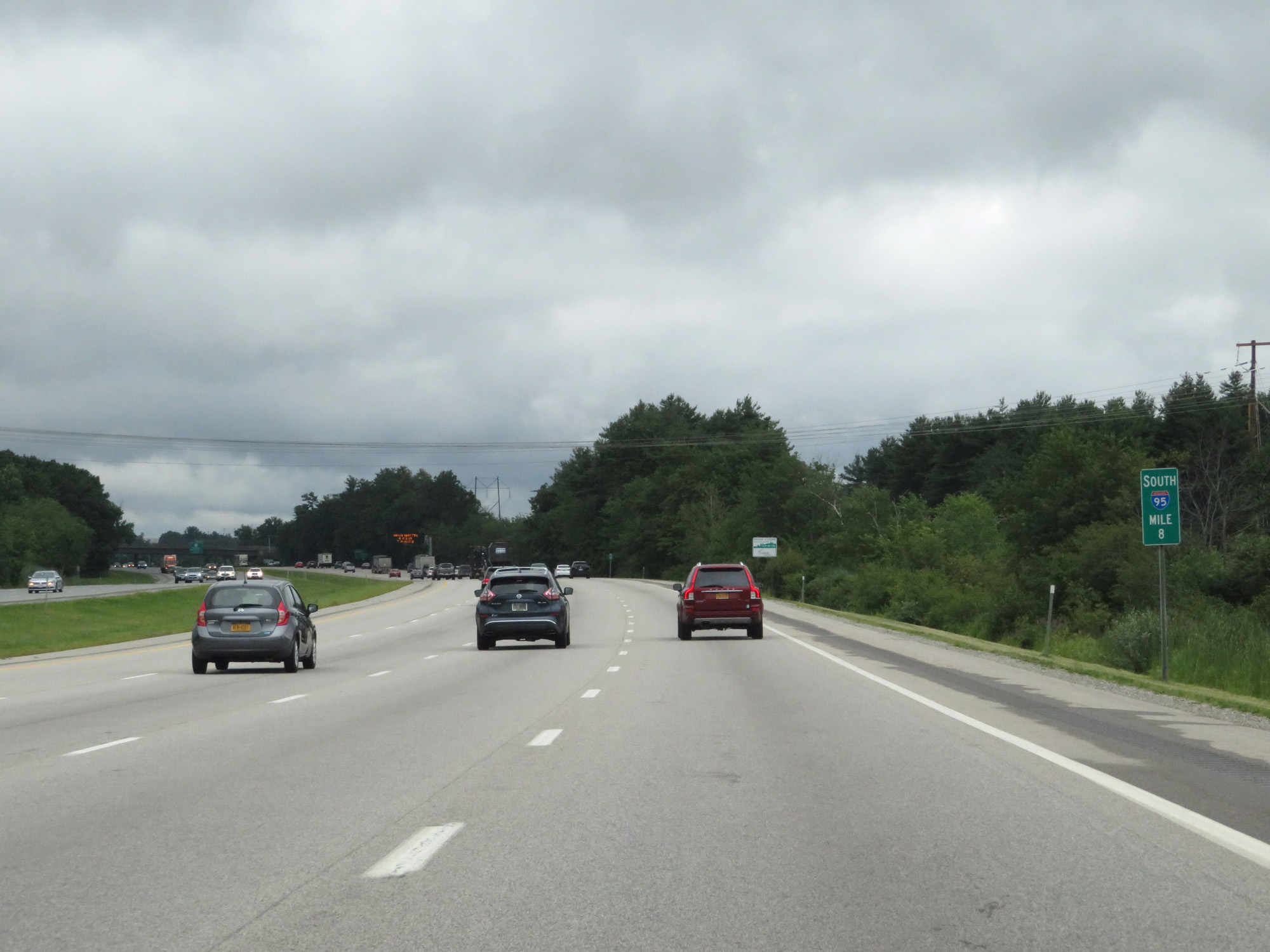 Interstate 95 South at the ramp to the New Hampshire State Liquor Store (Photo taken 8/8/17). |