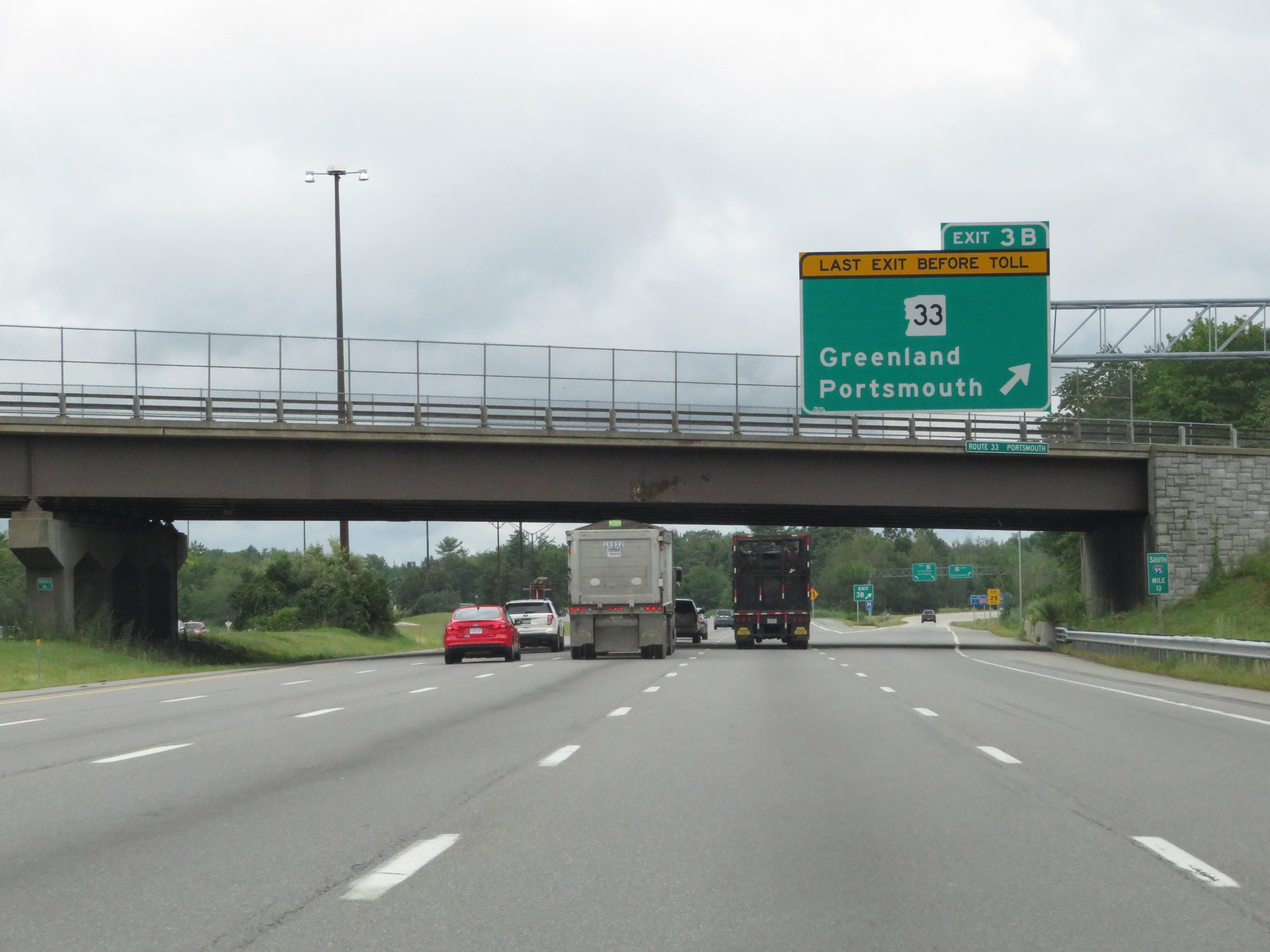 Interstate 95 South at Exit 3B: NH 33 - Greenland / Portsmouth (Photo taken 8/8/17). |