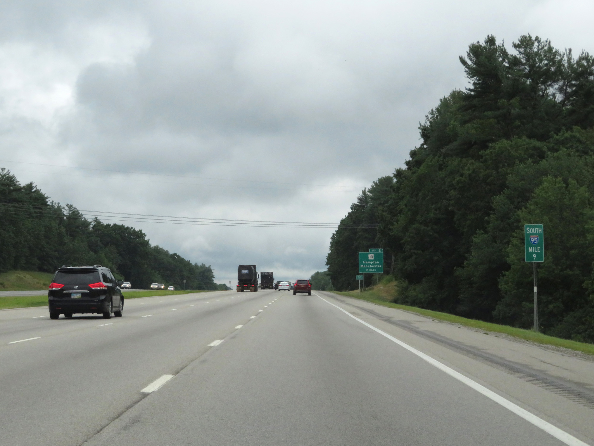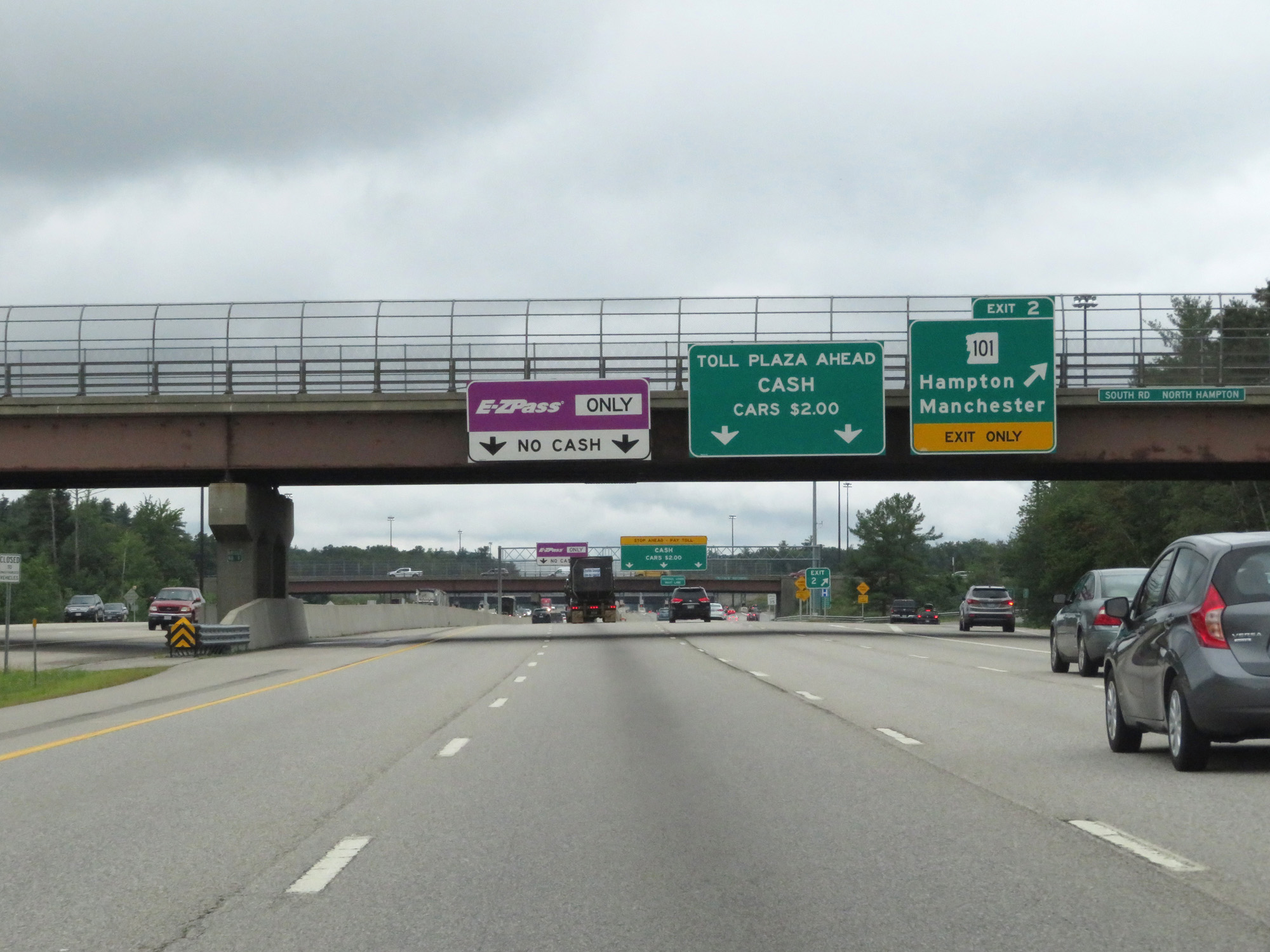 Interstate 95 South at Exit 2: NH 101 - Hampton / Manchester (Photo taken 8/8/17). |