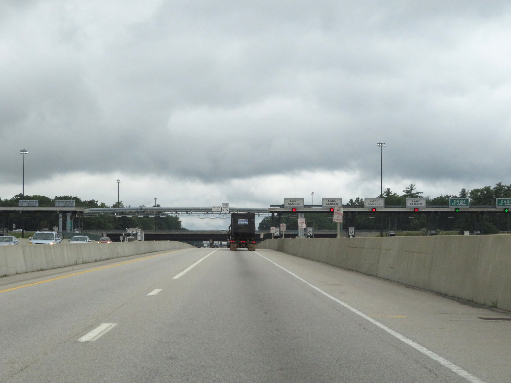 View of the Hampton Toll Plaza for the Blue Star Turnpike (New Hampshire Turnpike) on Interstate 95 South. (Photo taken 8/8/17). |