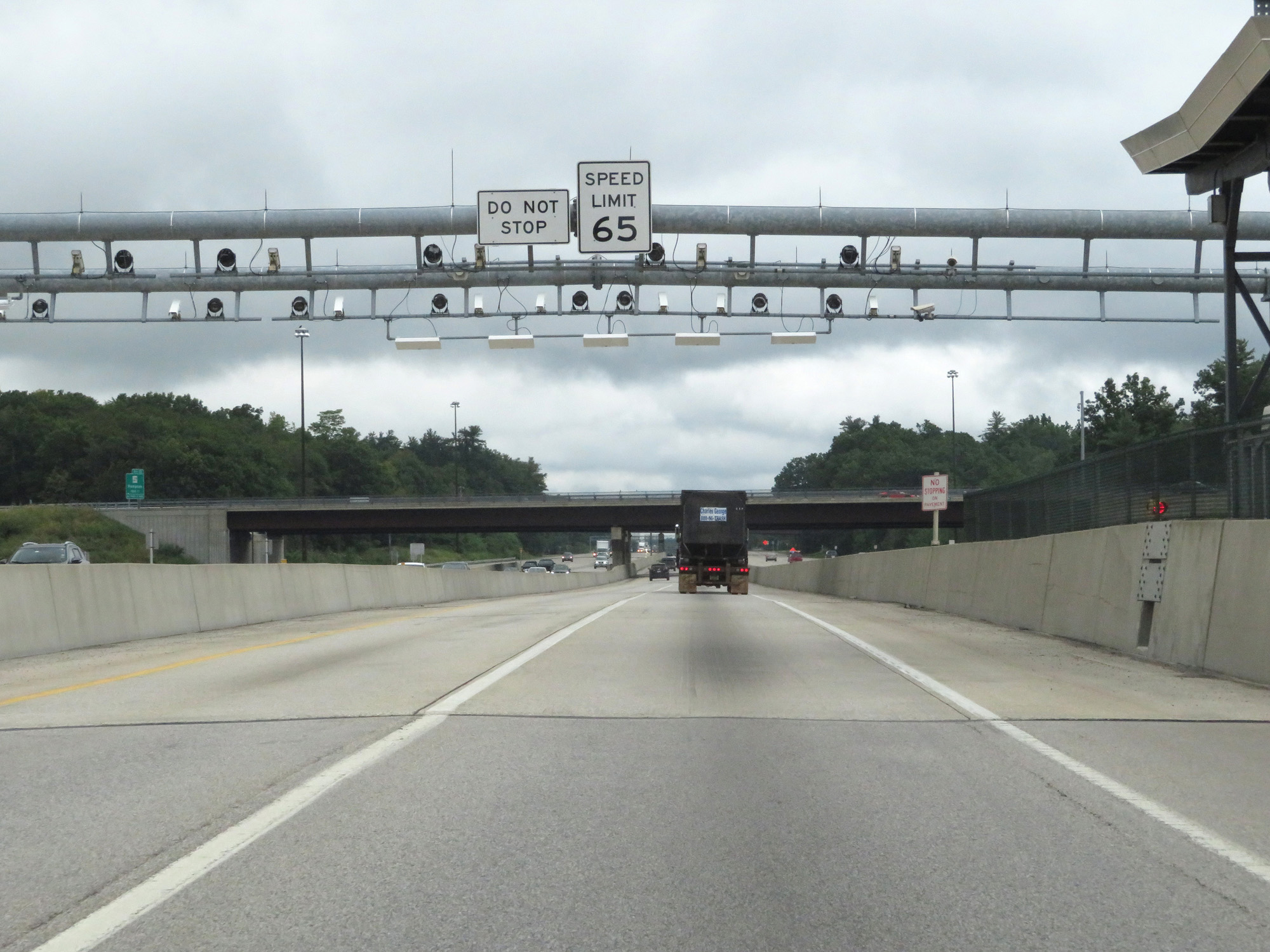 A view of the electronic toll gantry in the express lane. (Photo taken 8/8/17). |