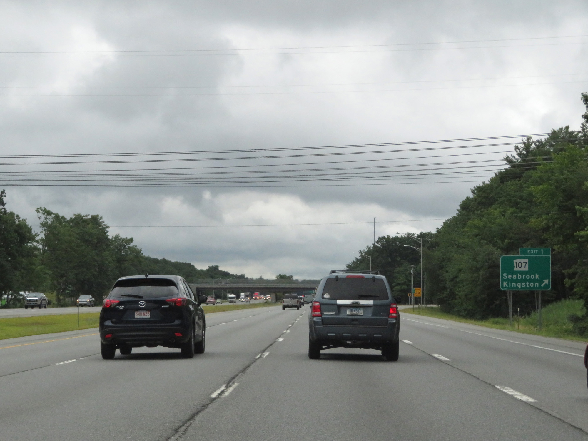 Interstate 95 South at Exit 1: NH 107 - Seabrook / Kingston (Photo taken 8/8/17). |