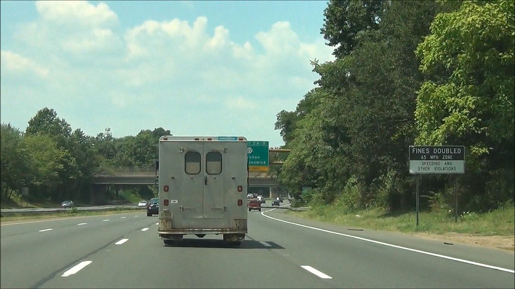 In the 65 mph speed limit zones in New Jersey, speeding and agressive driving fines are doubled. (Photo taken 7/24/12). |