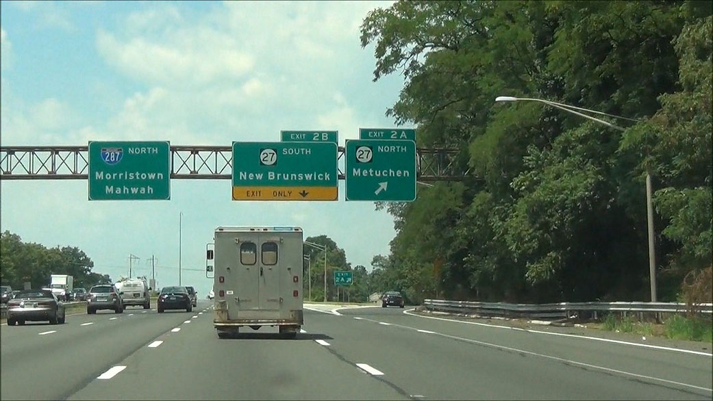 Interstate 287 North at Exit 2A: NJ 27 North - Metuchen (Photo taken 7/24/12). |