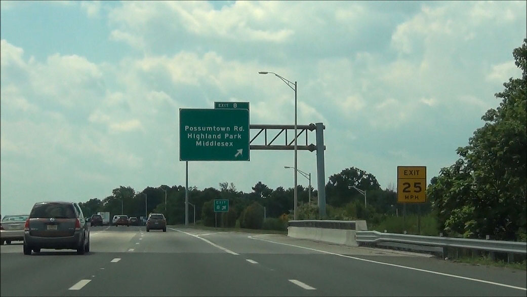 Interstate 287 North at Exit 8: Possumtown Rd / Highland Park / Middlesex (Photo taken 7/24/12). |