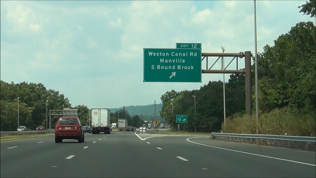 Interstate 287 North at Exit 12: Weston Canal Rd / Manville / South Bound Brook (Photo taken 7/24/12). |