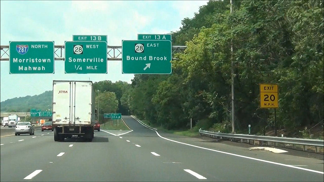 Interstate 287 North at Exit 13A: NJ 28 East - Bound Brook (Photo taken 7/24/12). |