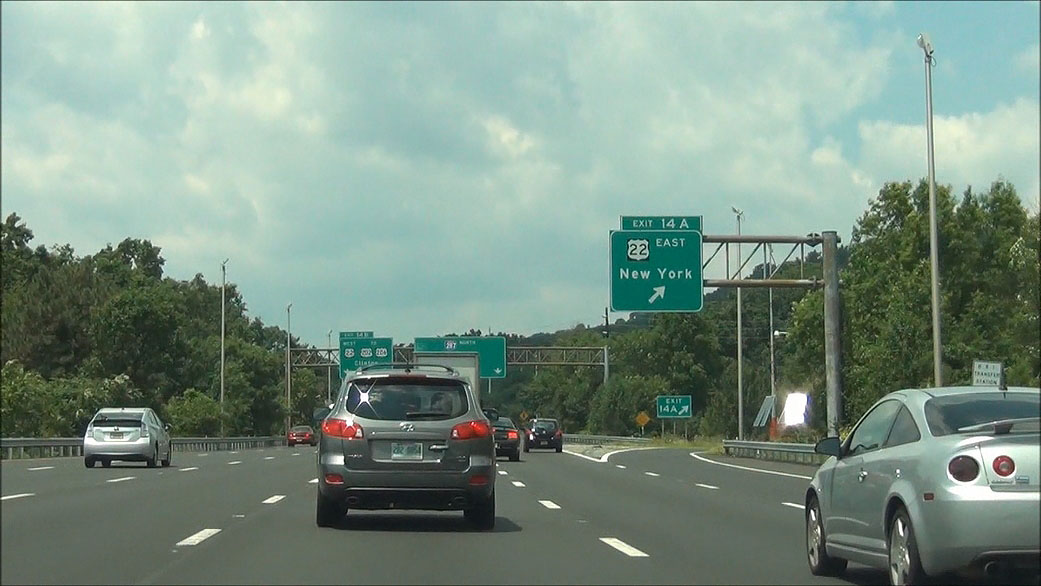 Interstate 287 North at Exit 14A: US 22 East - New York (Photo taken 7/24/12). |