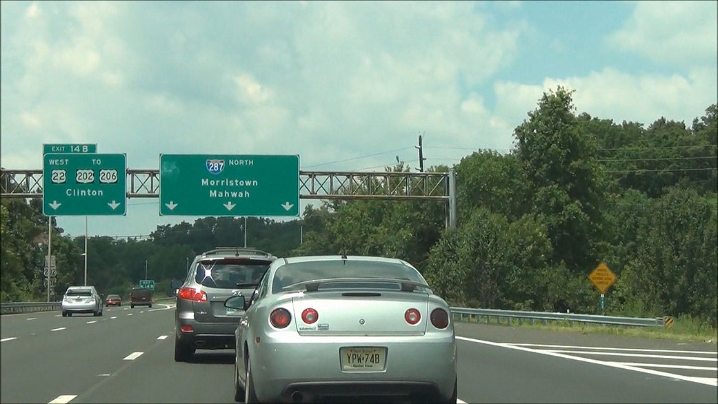 Interstate 287 North at Exit 14B: US 22 West / To US 202 / To US 206 - Clinton (Photo taken 7/24/12). |