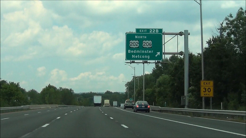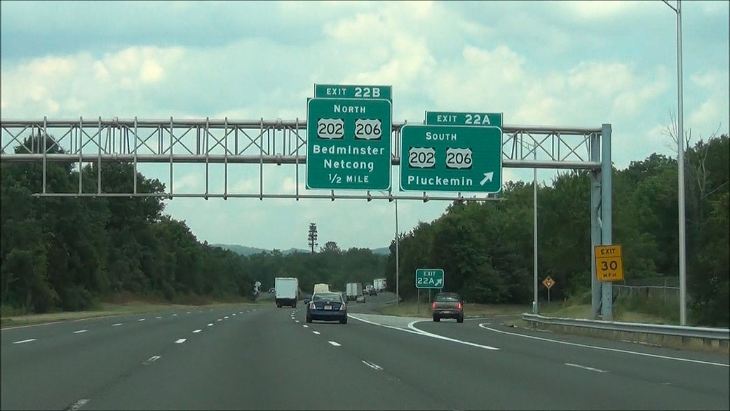 Interstate 287 North at Exit 22A: US 202 South / US 206 South - Pluckemin (Photo taken 7/24/12). |