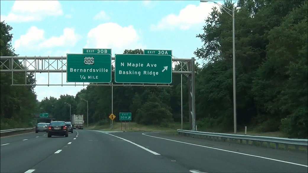Interstate 287 North at Exit 30A: North Maple Ave / Basking Ridge (Photo taken 7/24/12). |