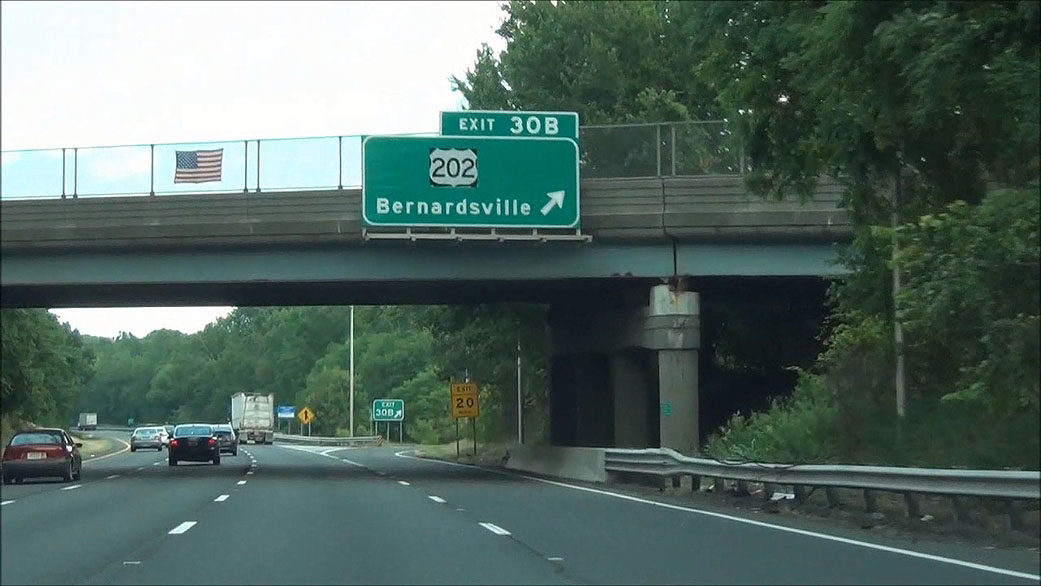 Interstate 287 North at Exit 30B: US 202 - Bernardsville (Photo taken 7/24/12). |