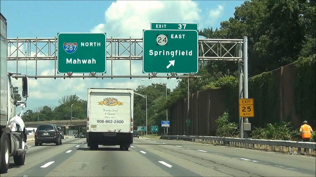 Interstate 287 North at Exit 37: NJ 24 East - Springfield (Photo taken 7/24/12). |
