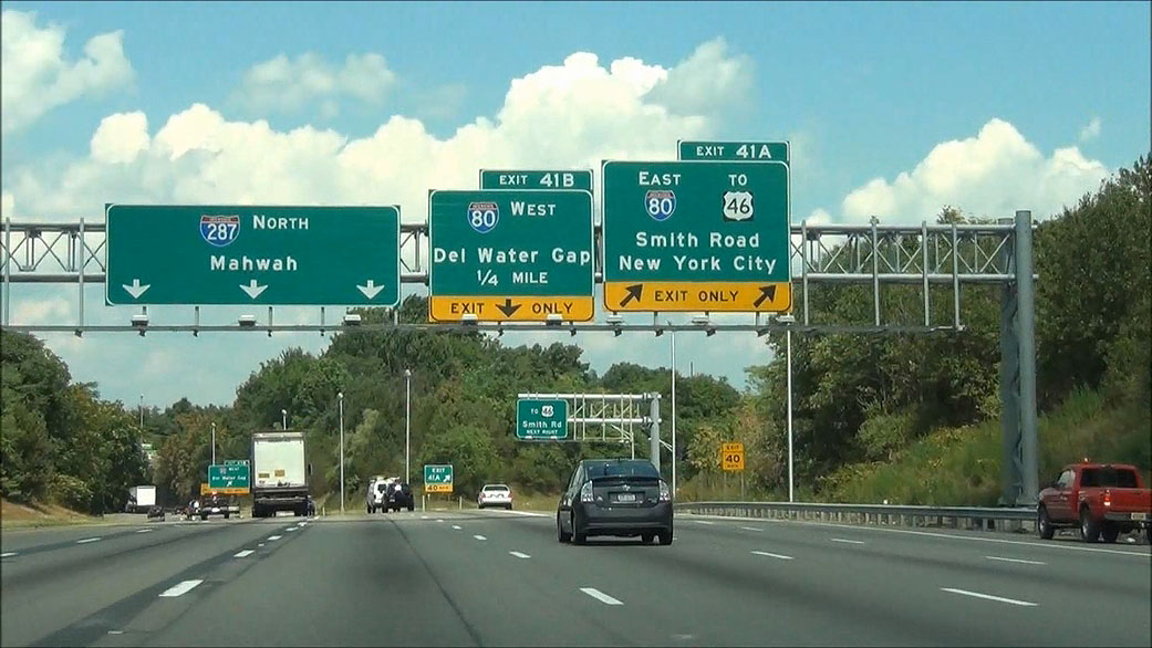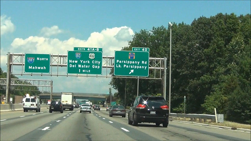 Interstate 287 North at Exit 41A: Interstate 80 East / To US 46 - Smith Road / New York City (Photo taken 7/24/12). |