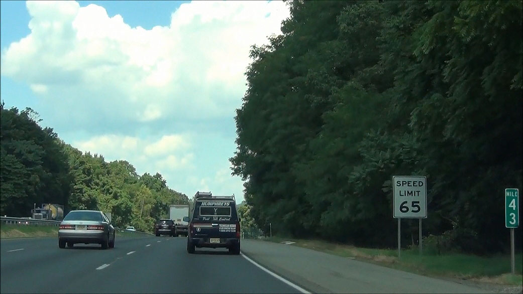 At mile marker 43, the speed limit returns to being 65 mph. (Photo taken 7/24/12). |