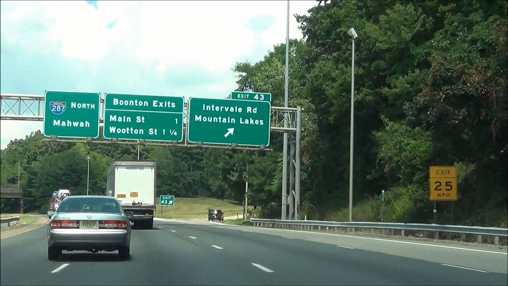 Interstate 287 North at Exit 43: Intervale Rd / Mountain Lakes (Photo taken 7/24/12). |