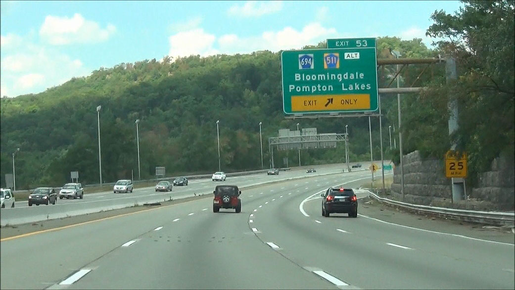Interstate 287 North at Exit 53: CR 694 / CR 511 Alt - Bloomingdale / Pompton Lakes (Photo taken 7/24/12). |