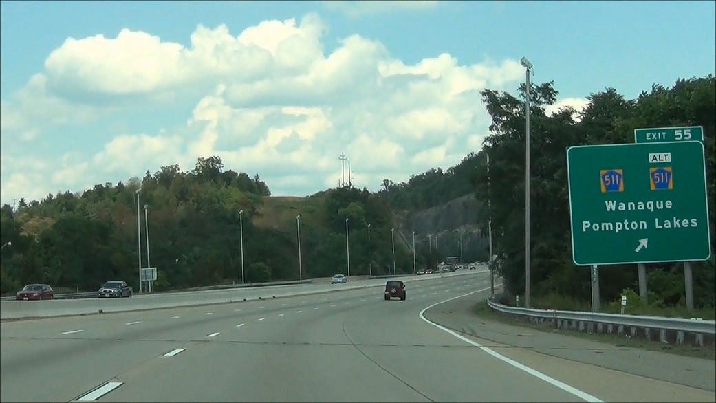 Interstate 287 North at Exit 55: CR 511 / CR 511 Alt - Wanaque / Pompton Lakes (Photo taken 7/24/12). |