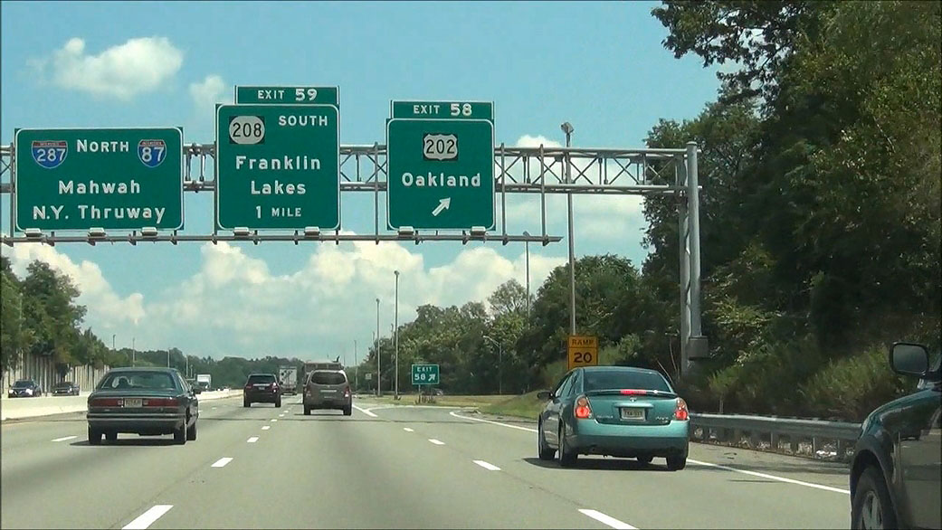 Interstate 287 North at Exit 59: NJ 208 South - Franklin Lakes (Photo taken 7/24/12). |