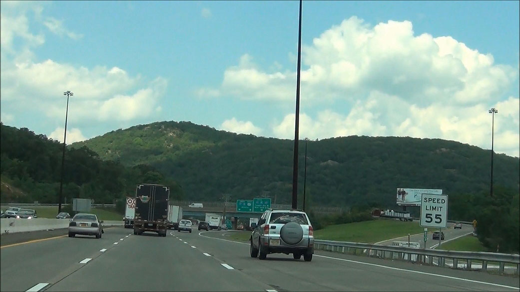 Interstate 287 North: Road view from mile marker 67.3, as the speed limit drops to 55 mph and you prepare to enter New York. (Photo taken 7/24/12). |