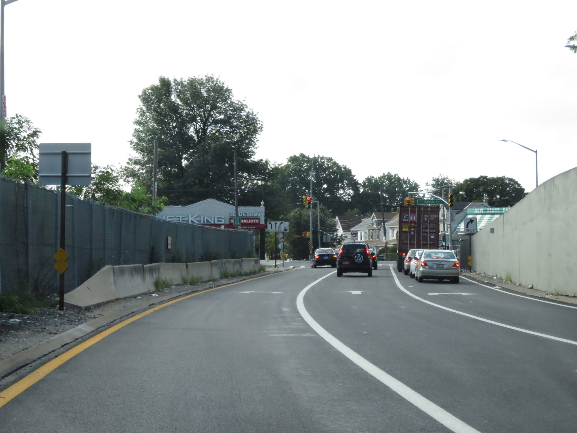 Interstate 295 South as it reaches its southern terminus at NY 25 at the traffic signal ahead. (Photo taken 8/20/16). |